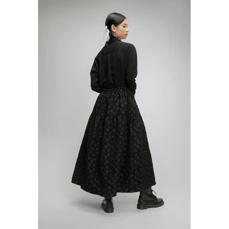 Raya Embossed Long Skirt in Black - Yestoday