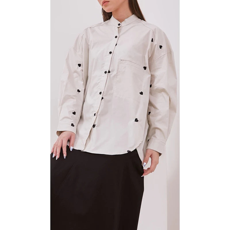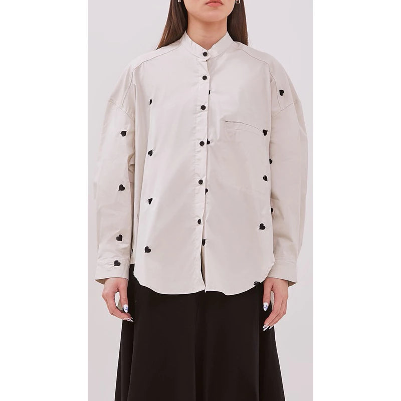 Oversized Mika Shirt In Embroidered Love - Yestoday