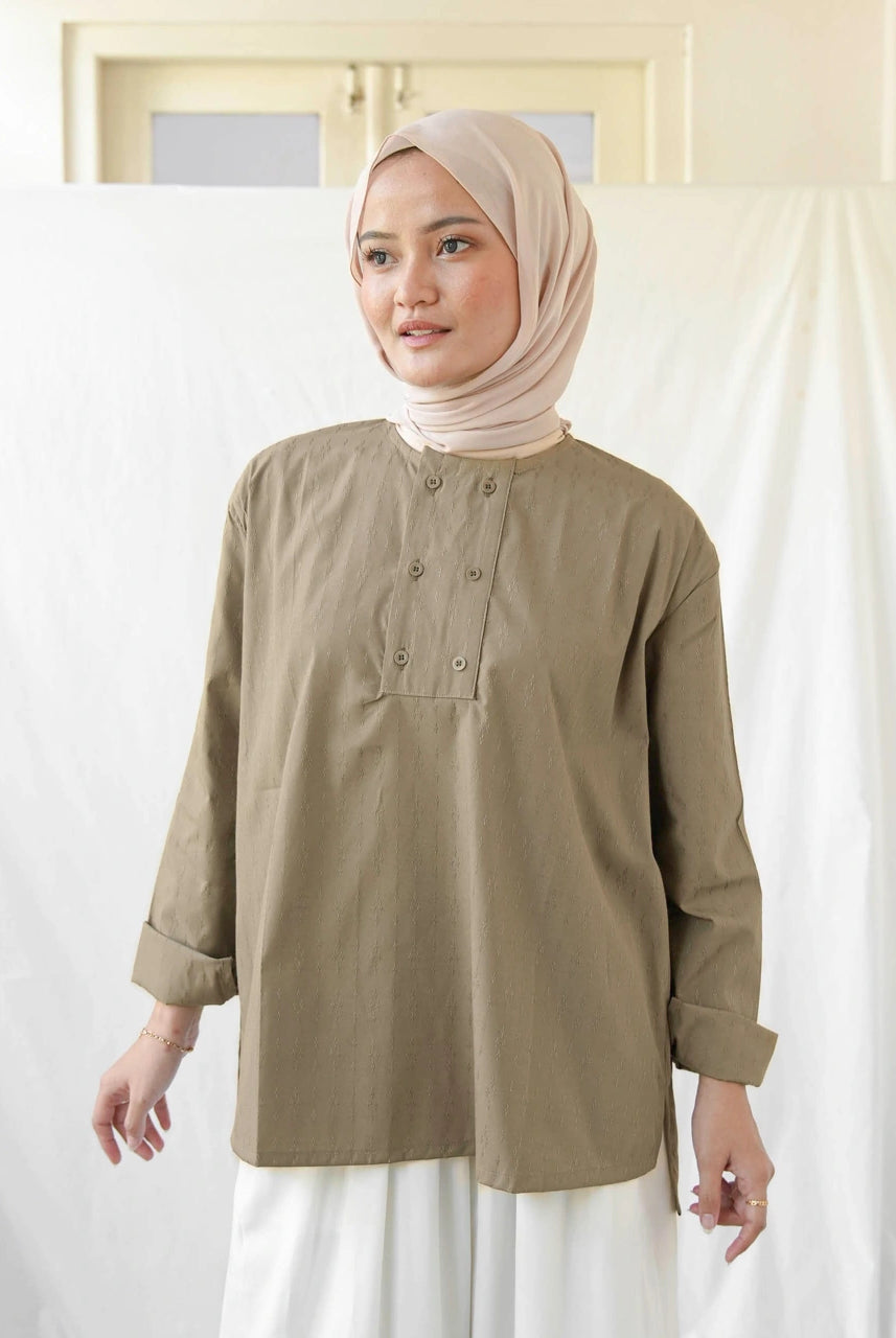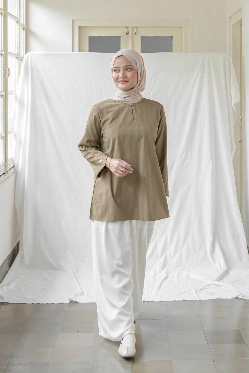 Desainnya yang simpel namun tetap elegan membuat blouse modest mudah dipadukan dengan berbagai fashion item lainnya—seperti rok midi, celana kulot, hingga outerwear. Baik untuk tampilan sehari-hari, aktivitas kerja, maupun acara semi-formal, blouse modest memberi keleluasaan dalam berbusana tanpa menghilangkan kesan anggun. Pilihan warna netral hingga motif lembut pun semakin memperkaya gaya personalmu yang tetap santun dan menawan.