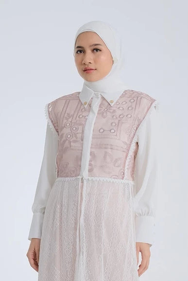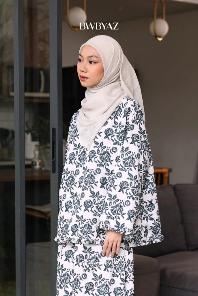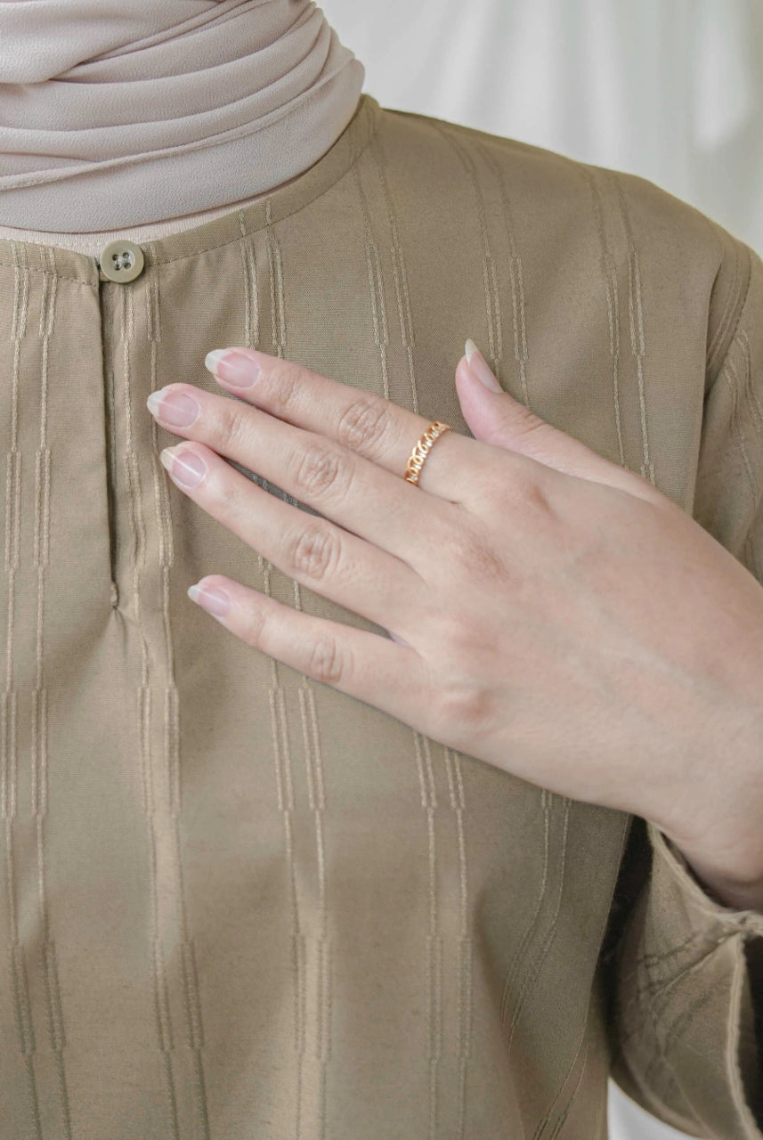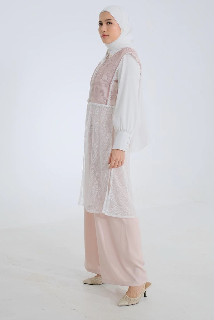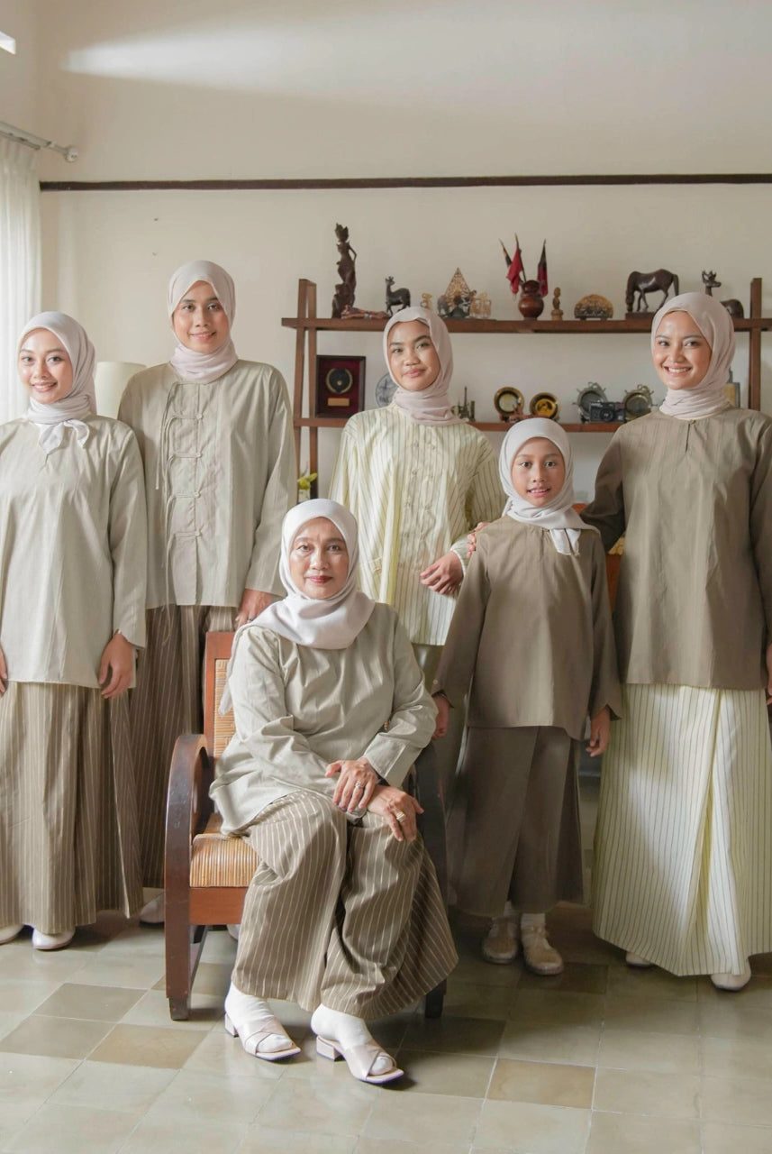 Dari sisi warna, tren tahun ini masih mengedepankan palet natural dan pastel yang lembut, seperti sage green, broken white, dan dusty rose. Namun, hadir pula sentuhan warna-warna lebih tegas seperti deep maroon, navy, dan forest green—memberikan opsi bagi yang ingin tampil lebih bold namun tetap modest. Motif juga mengalami evolusi; floral klasik kini dikombinasikan dengan pola geometris yang clean, atau bahkan print abstrak bernuansa artistik yang tetap nyaman dipadukan untuk tampilan sehari-hari.