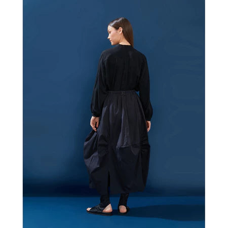 Curved Pleated Skirt Black - Yestoday