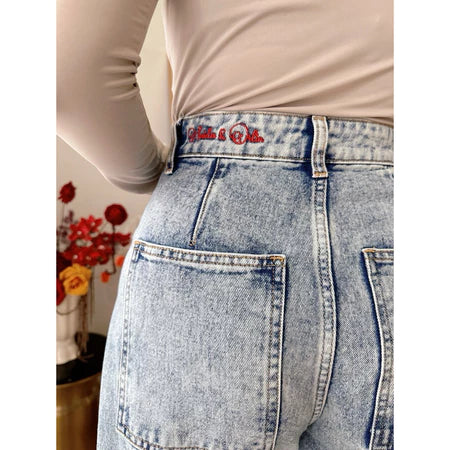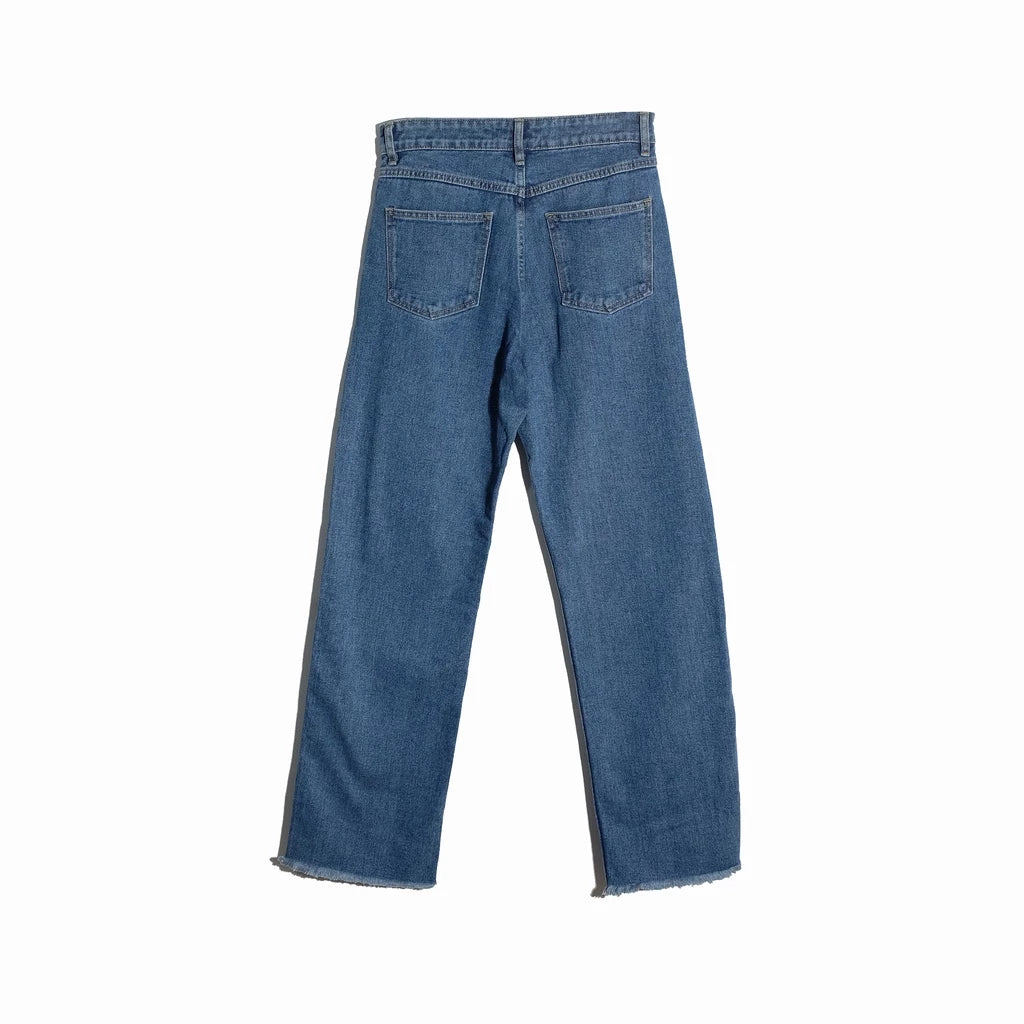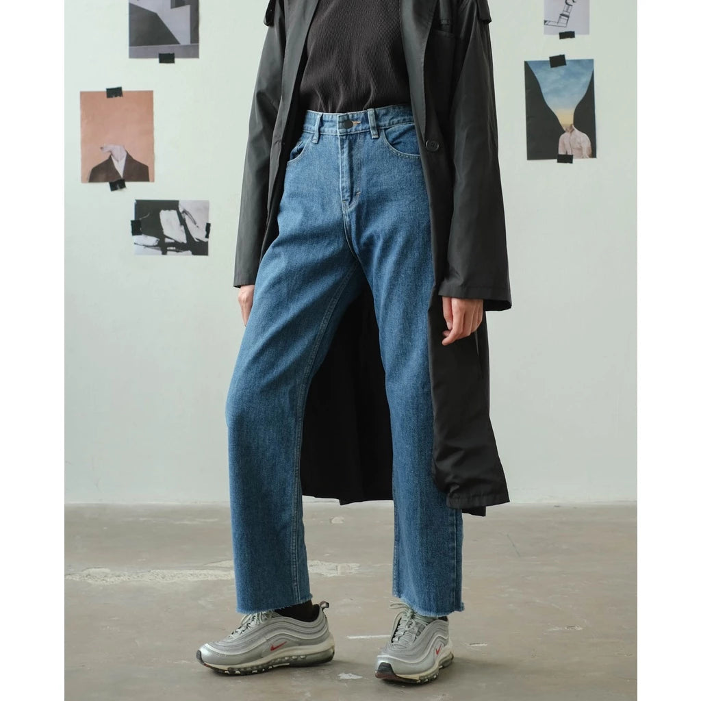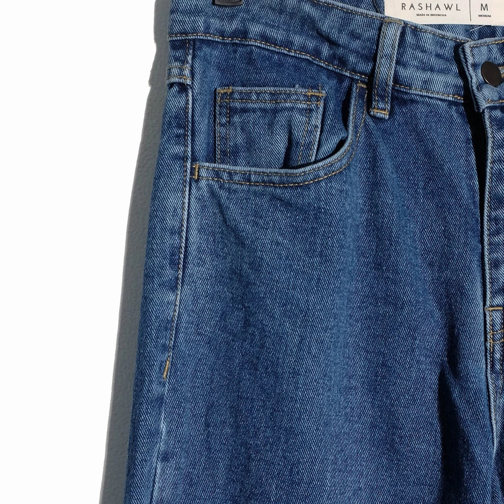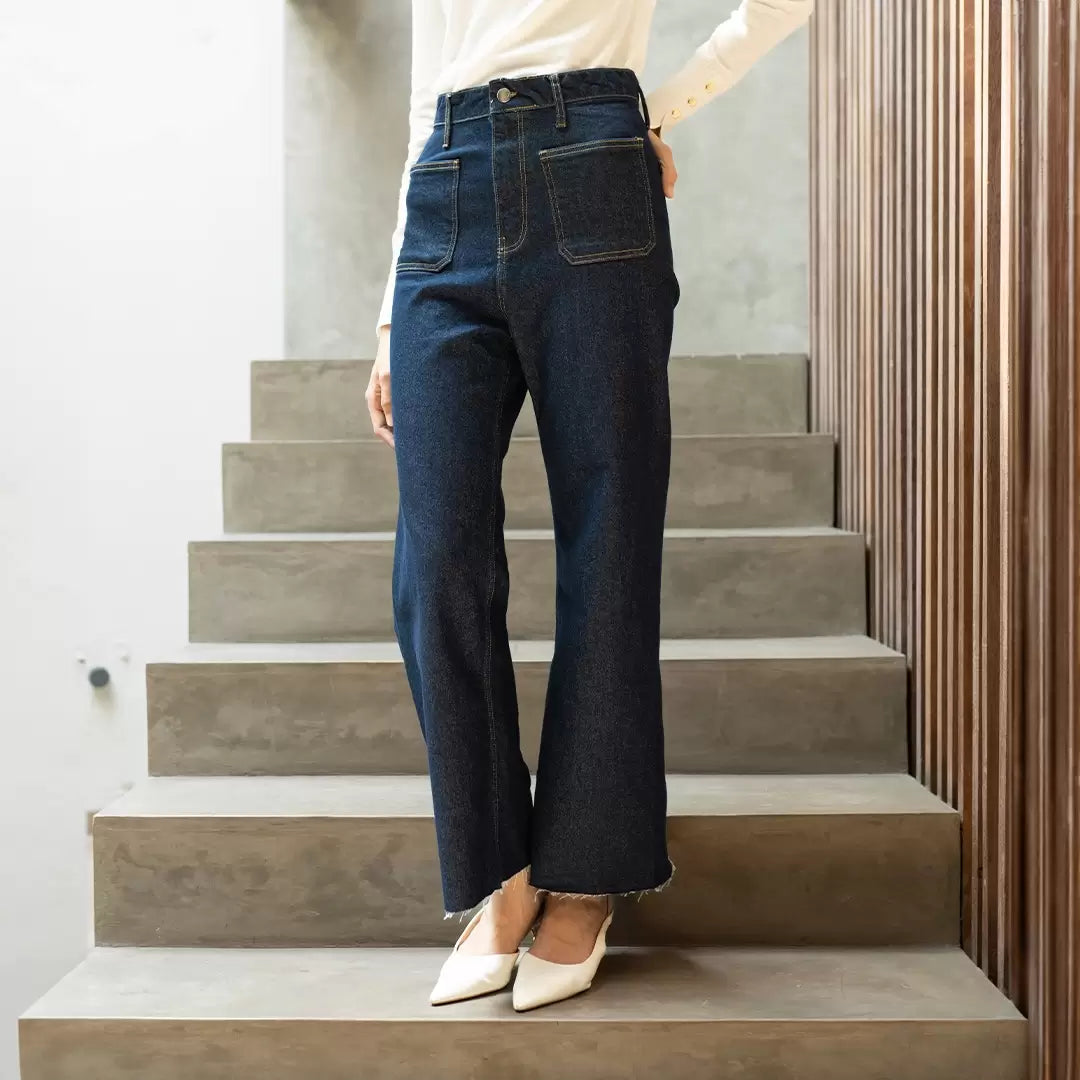 Model celana denim dengan potongan lebar tapi panjangnya hanya sampai betis atau sedikit di atas mata kaki. Cocok untuk tampilan santai tapi tetap rapi dan anggun.