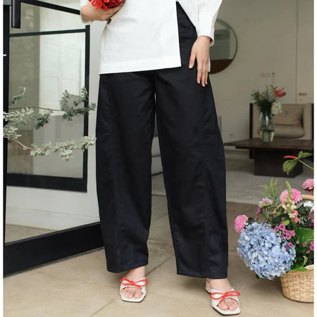 Potongan high waist makin digemari karena memberikan siluet tubuh yang jenjang dan rapi, plus cocok dipadukan dengan atasan modest seperti blouse oversized, tunik, atau outer panjang.