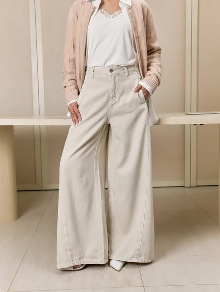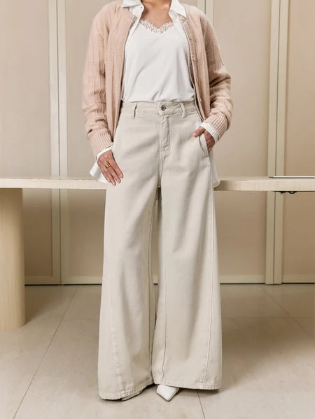 Celana denim dengan siluet lebar dari atas sampai bawah. Nggak cuma nyaman, tapi juga pas banget buat kamu yang mengutamakan modesty dalam berpakaian. Tampilan effortlessly chic banget, lho!