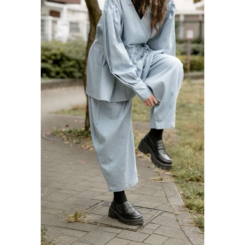 Longgar dan santai dengan kesan maskulin yang tetap bisa kamu buat terlihat feminin dan anggun. Padukan dengan atasan feminin seperti blouse flowy atau outer panjang, dijamin cocok!