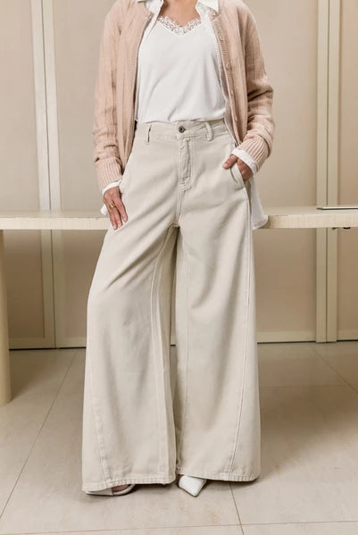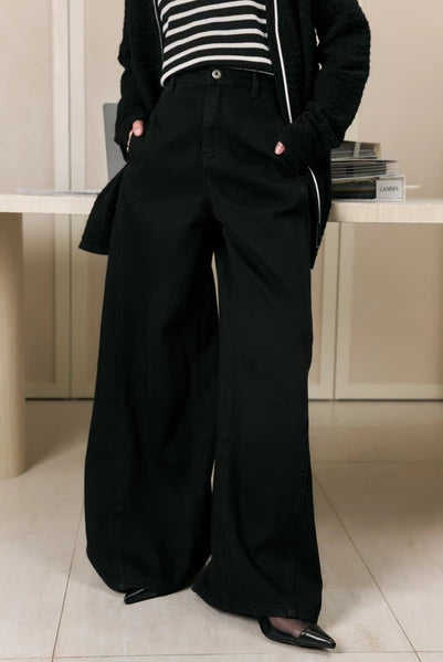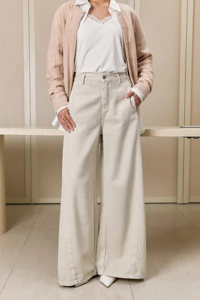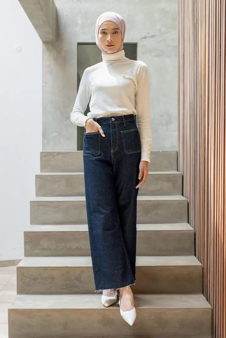 Celana denim dengan siluet lebar dari atas sampai bawah. Nggak cuma nyaman, tapi juga pas banget buat kamu yang mengutamakan modesty dalam berpakaian. Tampilan effortlessly chic banget, lho!