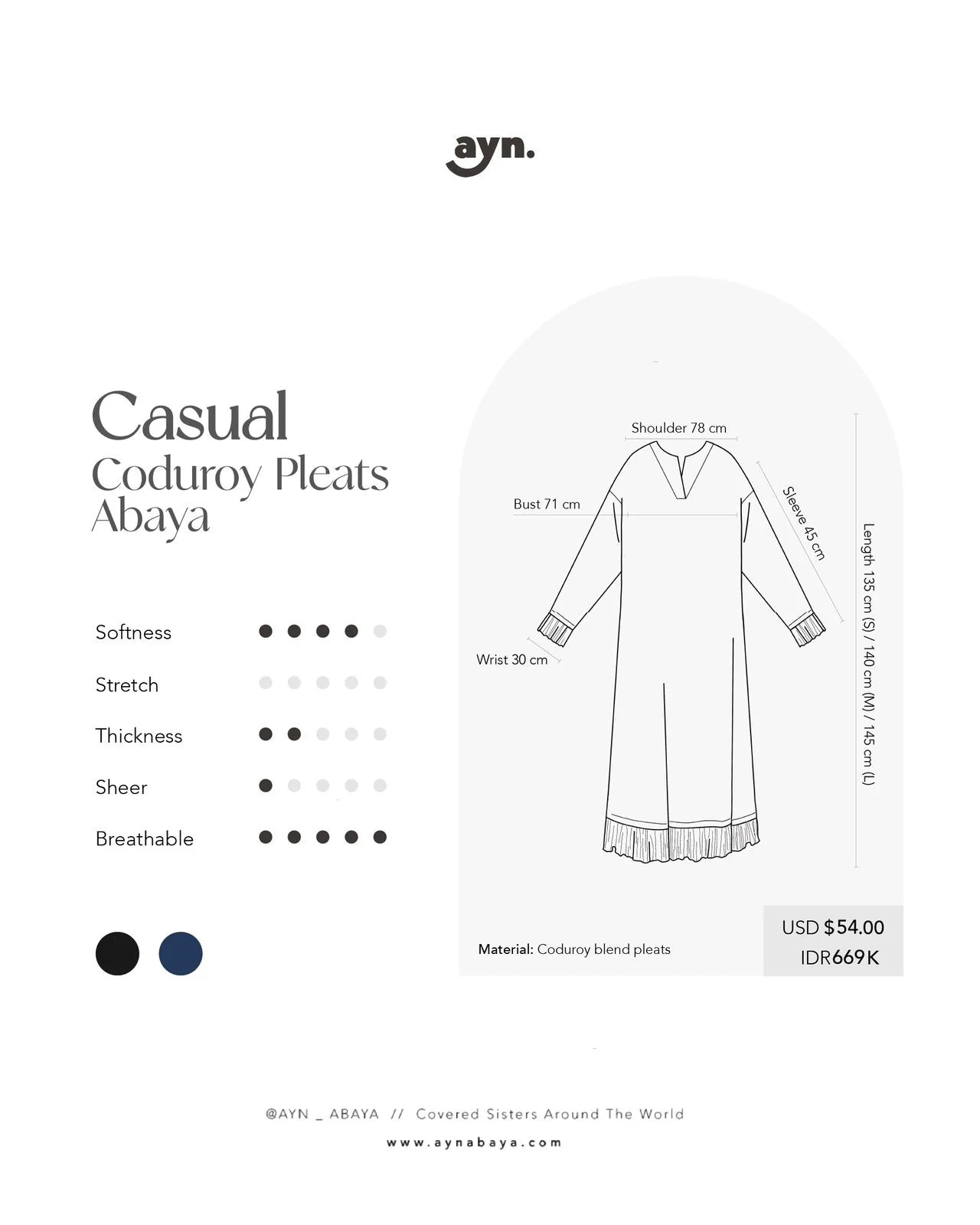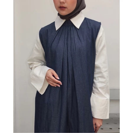 Casual Corduroy Pleats Abaya Navy - Ayn Abaya