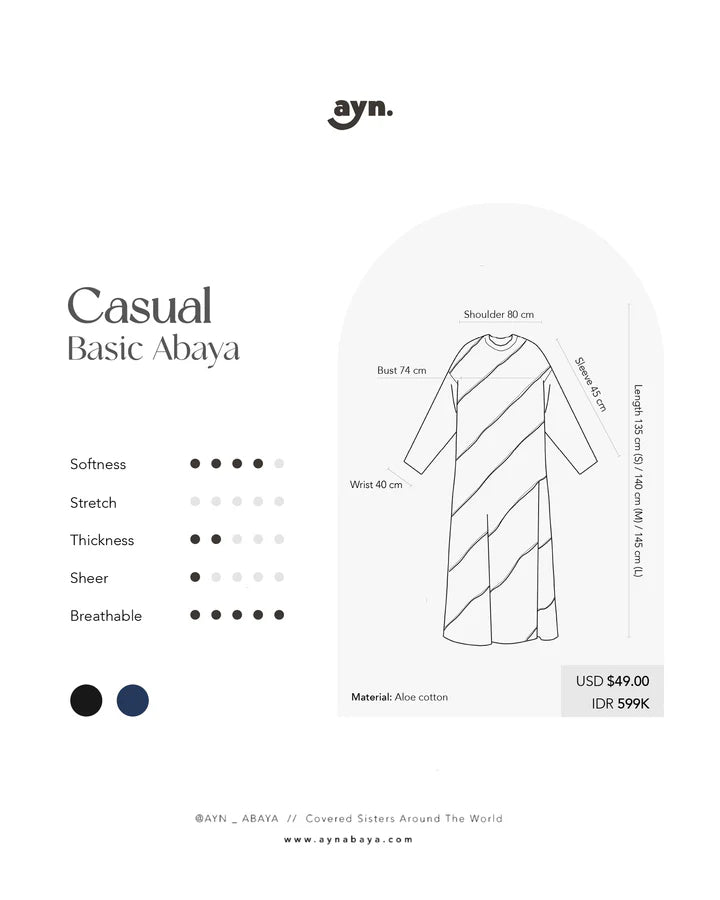 Casual Basic Abaya Navy - Ayn Abaya