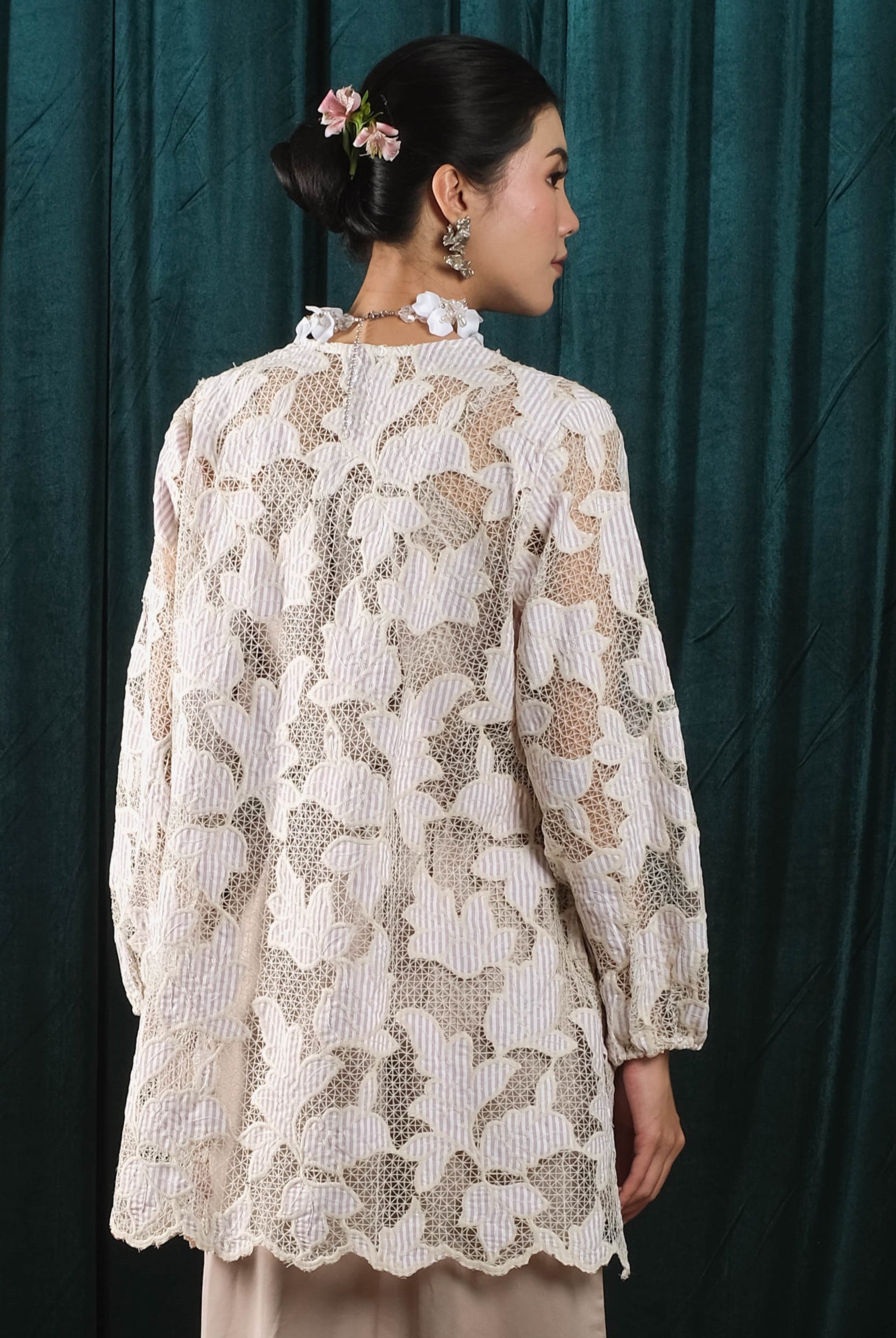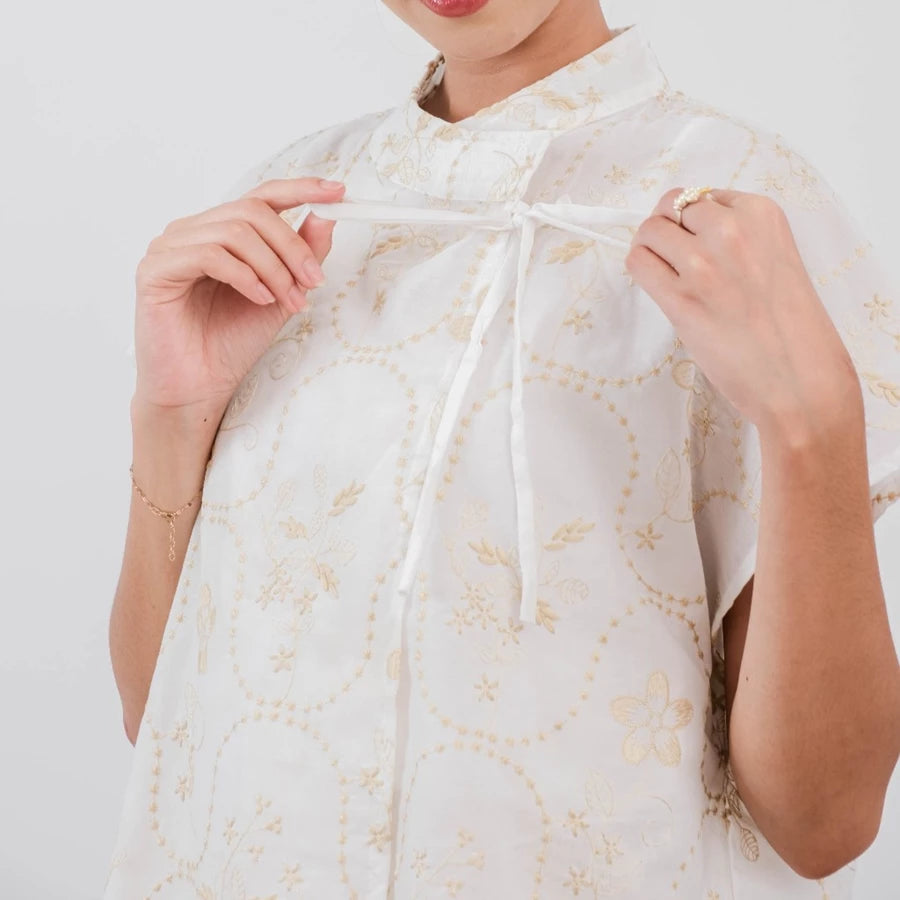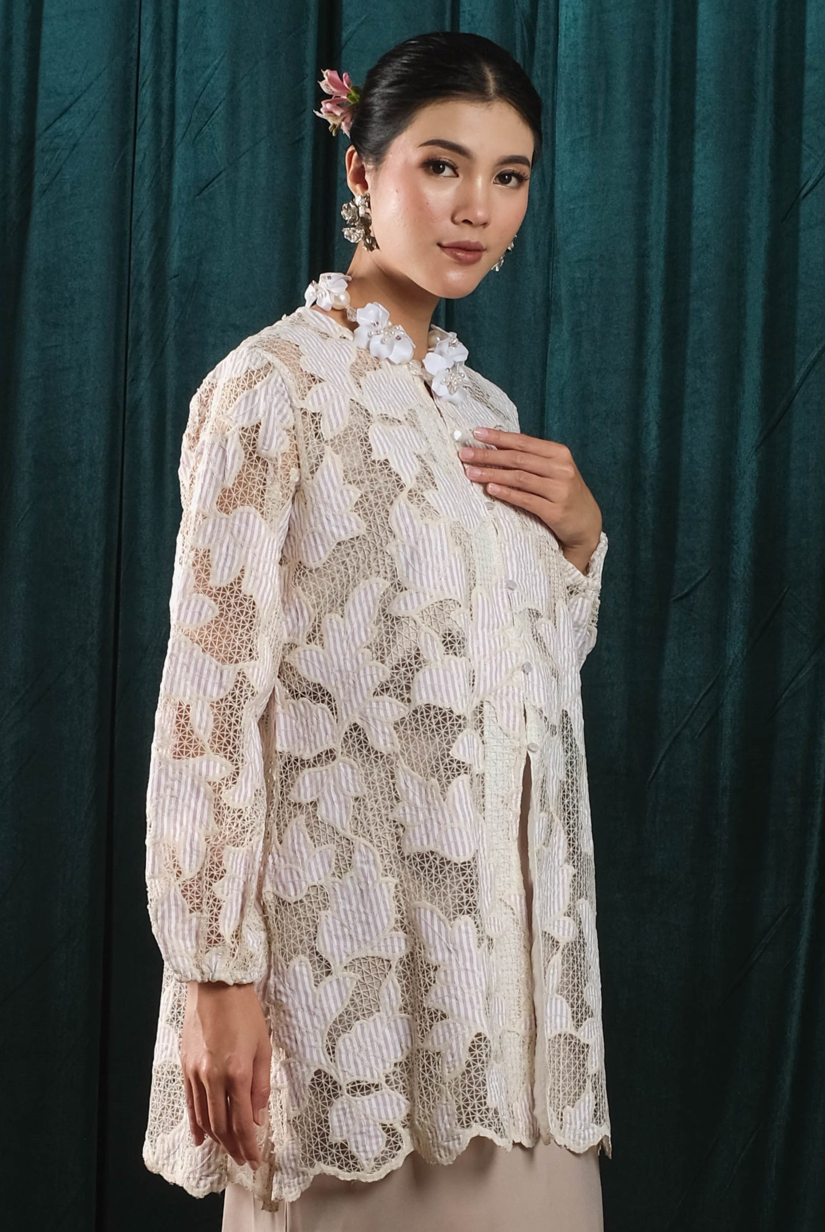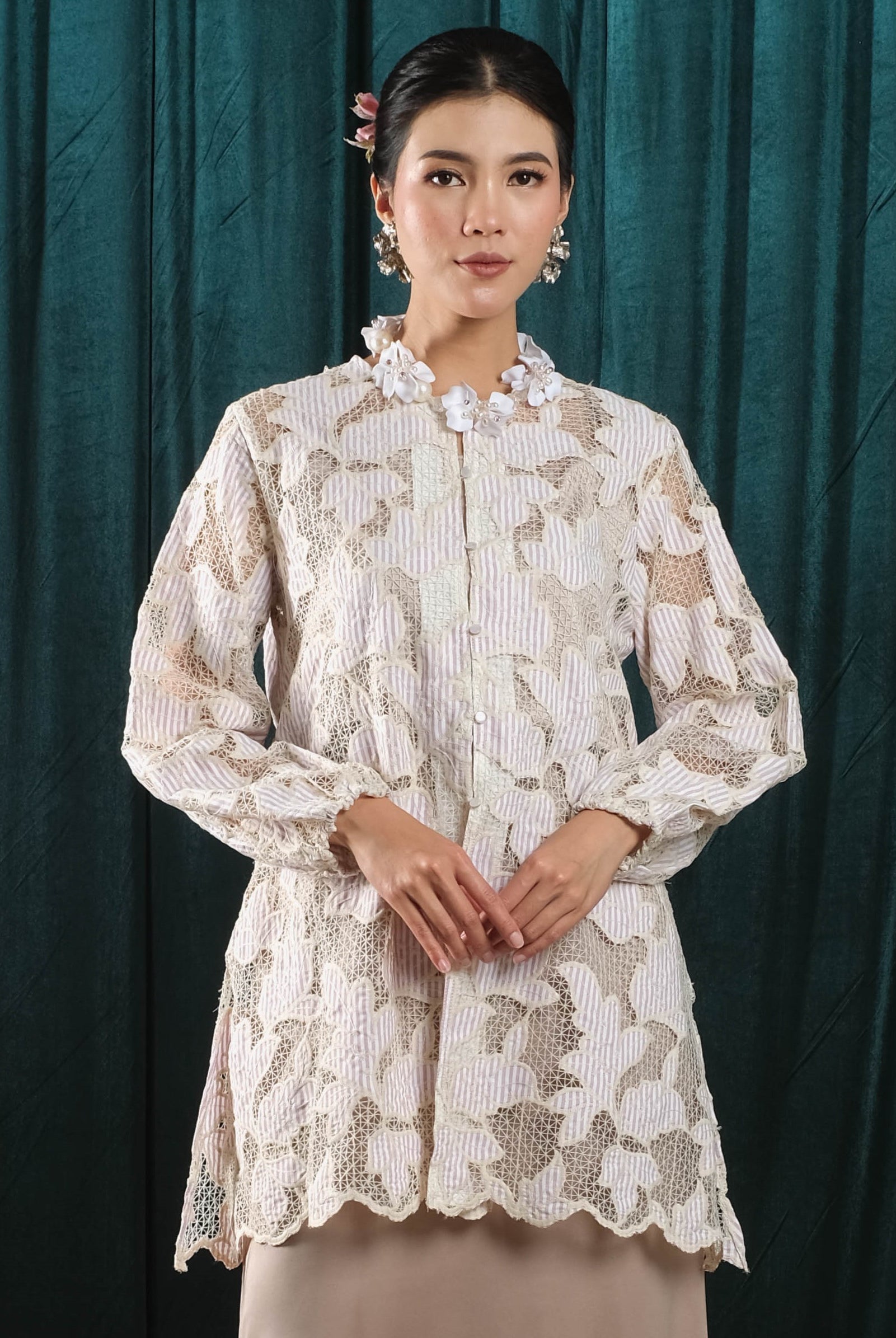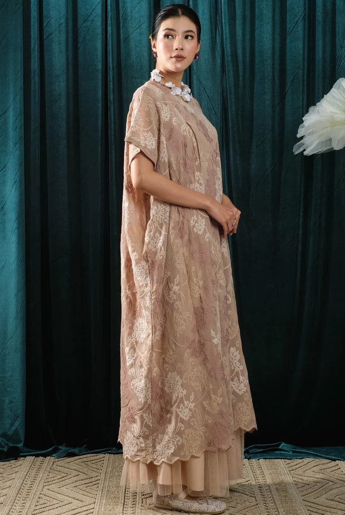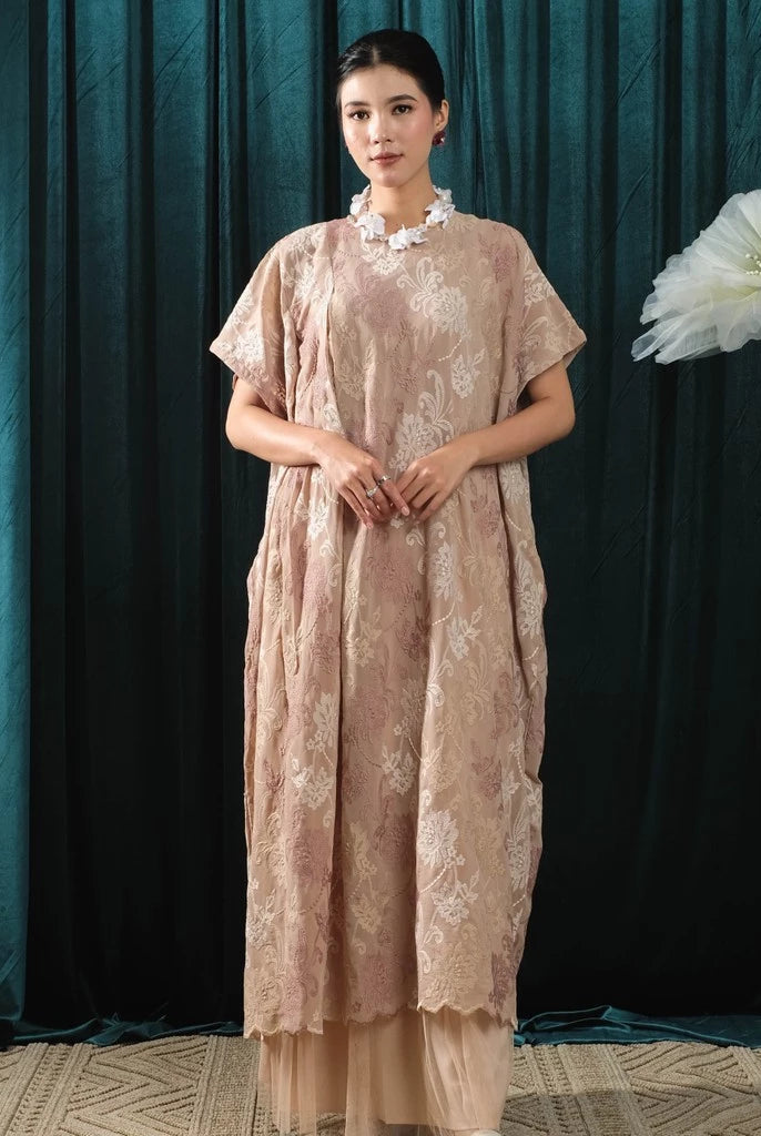 Holy Peony is a fashion brand that emphasizes elegance and versatility, catering to a range of styles while maintaining a timeless appeal. It blends sophisticated design elements like brocade, lace, and organza with everyday practicality, making its collections suitable for various occasions.