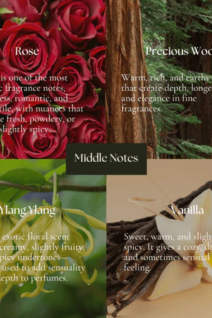 Wangi buah yang manis dari plum, sour cherry, dan raspberry di top notes-nya, berpadu dengan mid notes orchid, iris, dan freesia. Dengan base notes vanilla, amber, dan musk, parfum ini memberikan kesan feminin dan lembut, ideal untuk aktivitas harian.