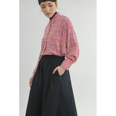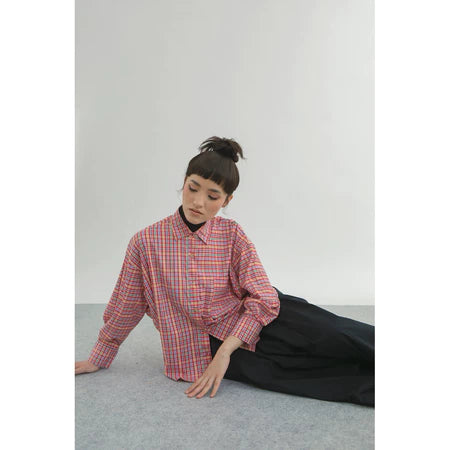 Oversized Loose Shirt in Red Plaid - Yestoday