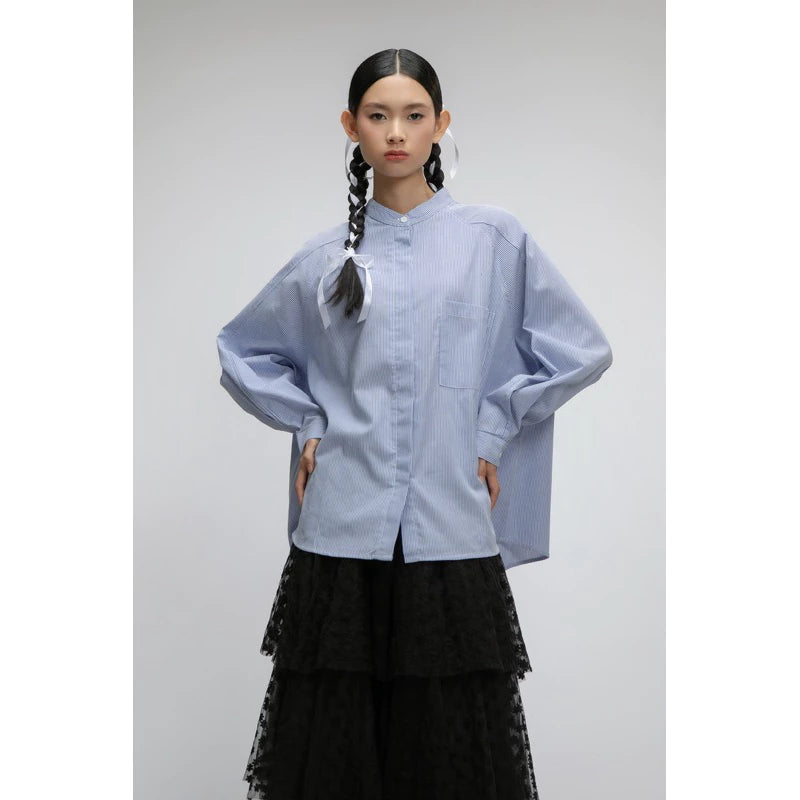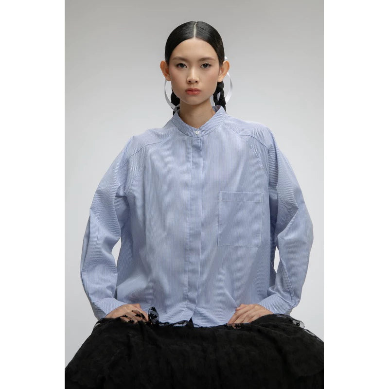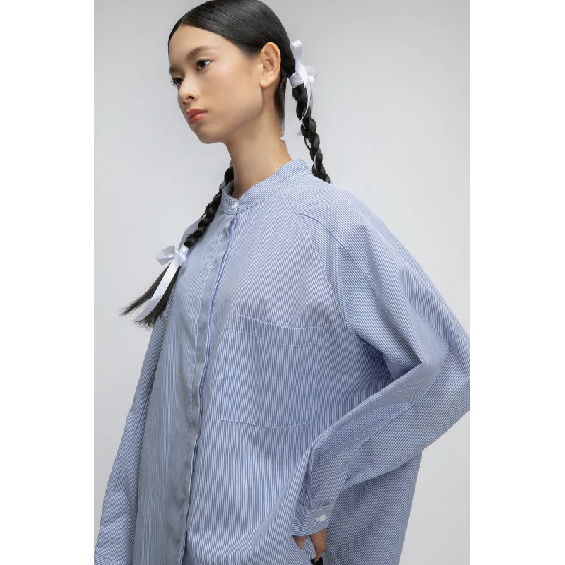 Oversized Raglan Pocket Shirt in Stripe Blue - Yestoday