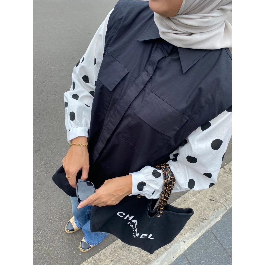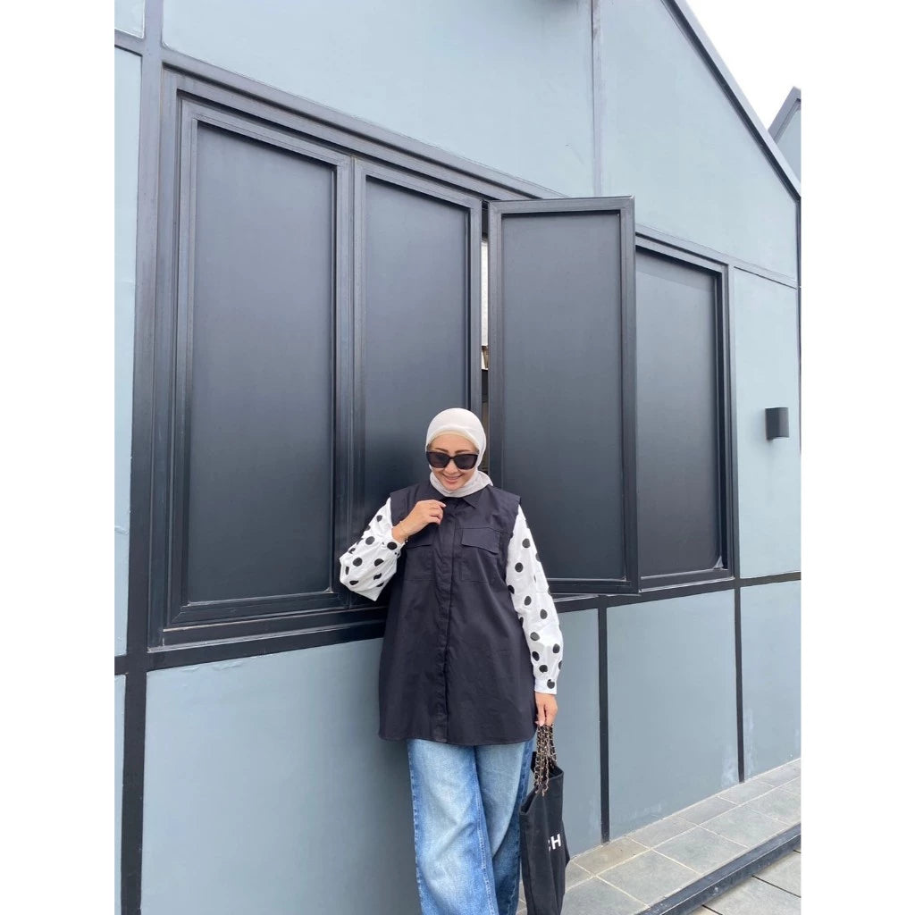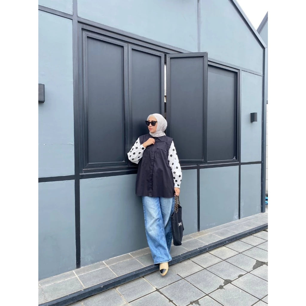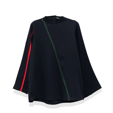 Levy Pleated Patch Blouse Black - Rashawl