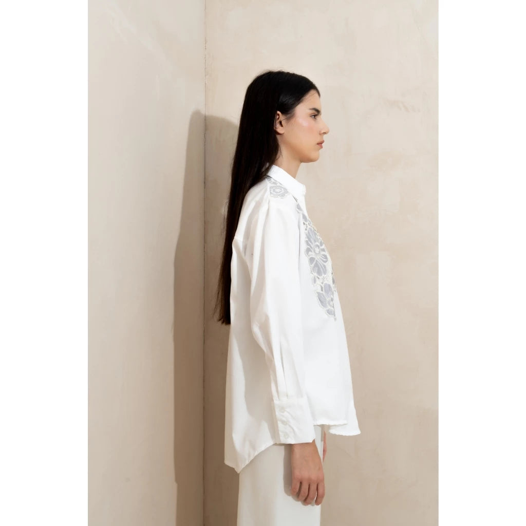 Oversized Mika Shirt In Embroidered Love - Yestoday