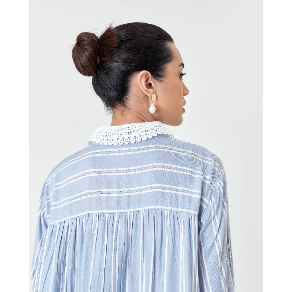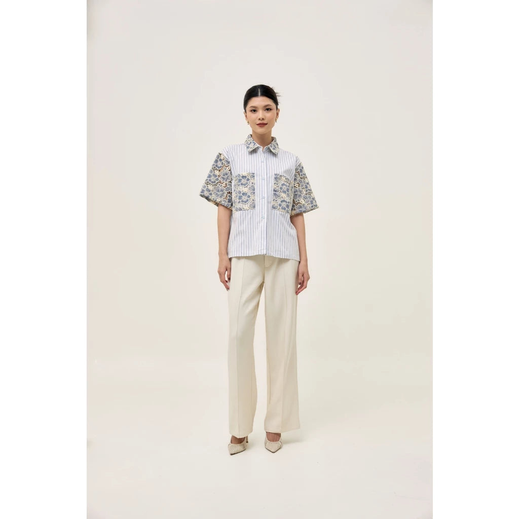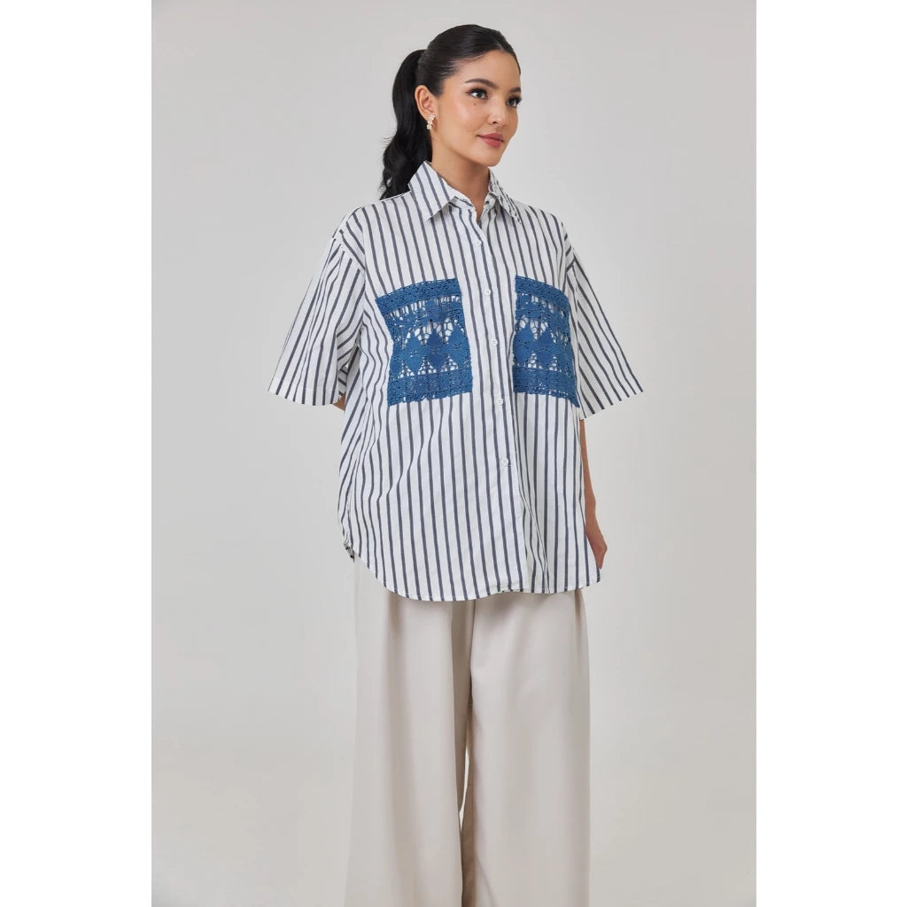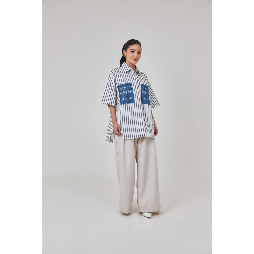 Tafya Shirt In Blue White - Studio Tui