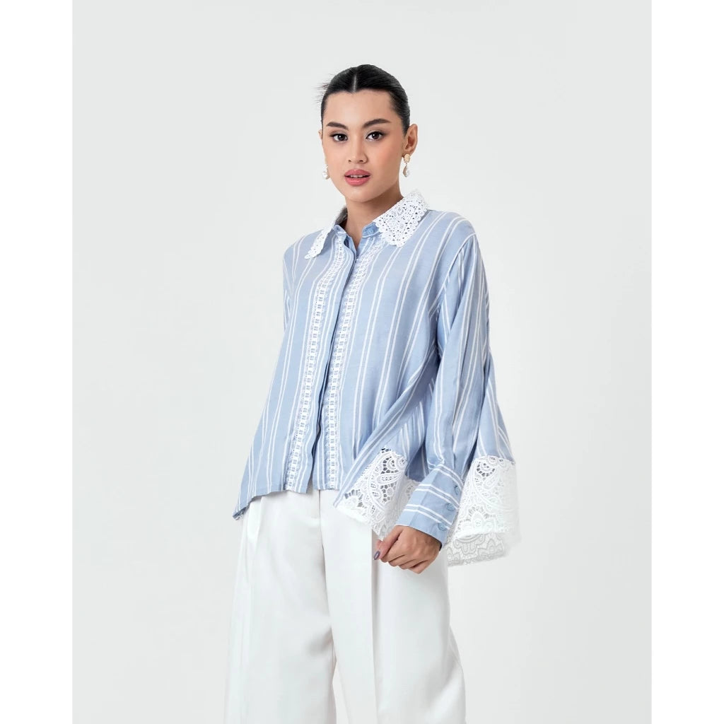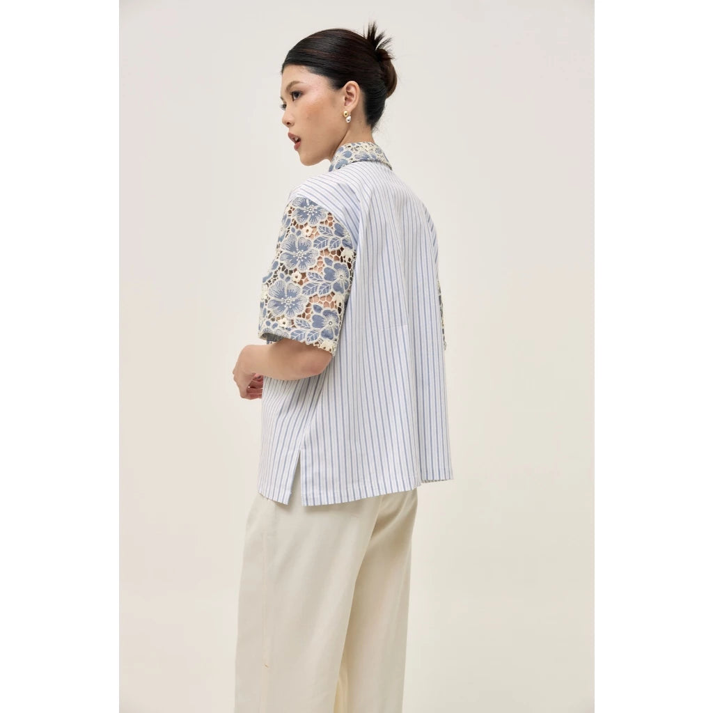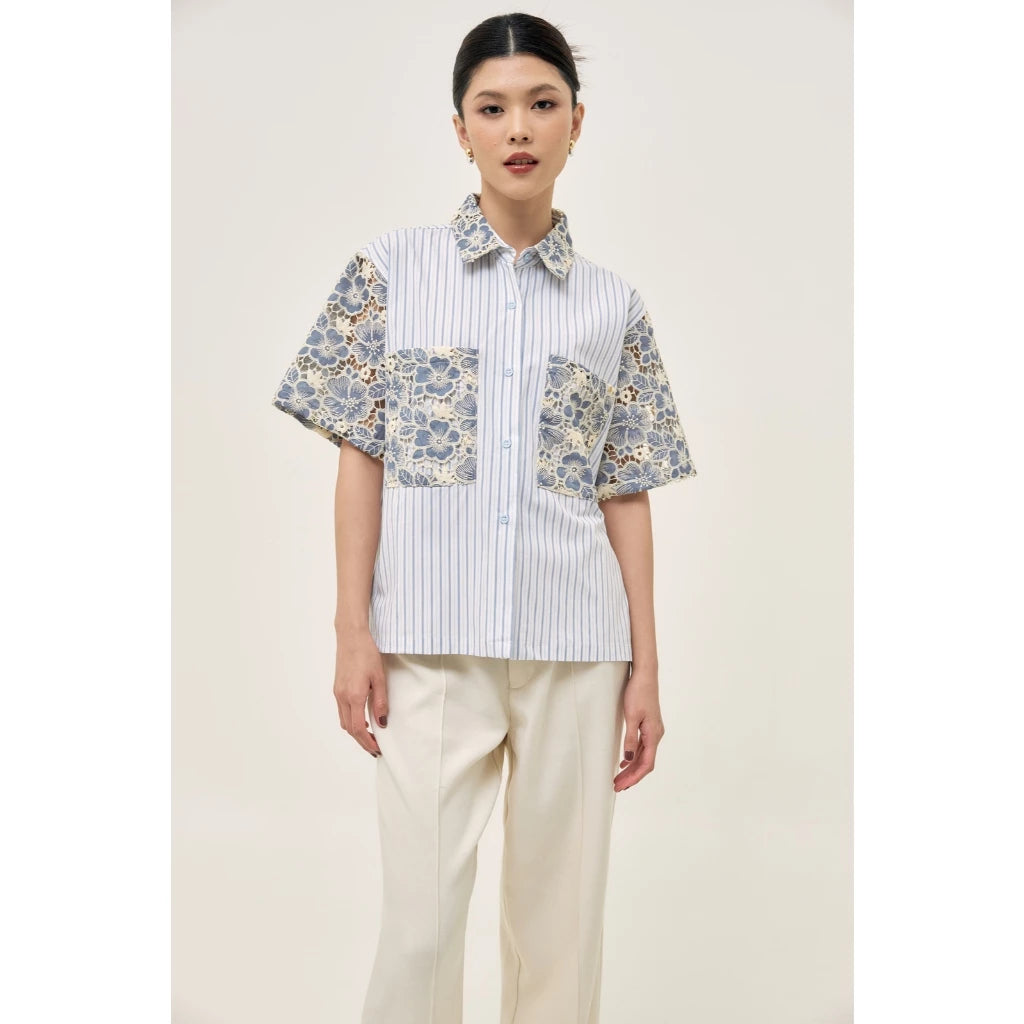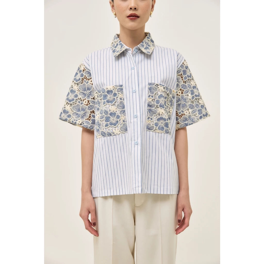 Tafya Shirt In Blue White - Studio Tui