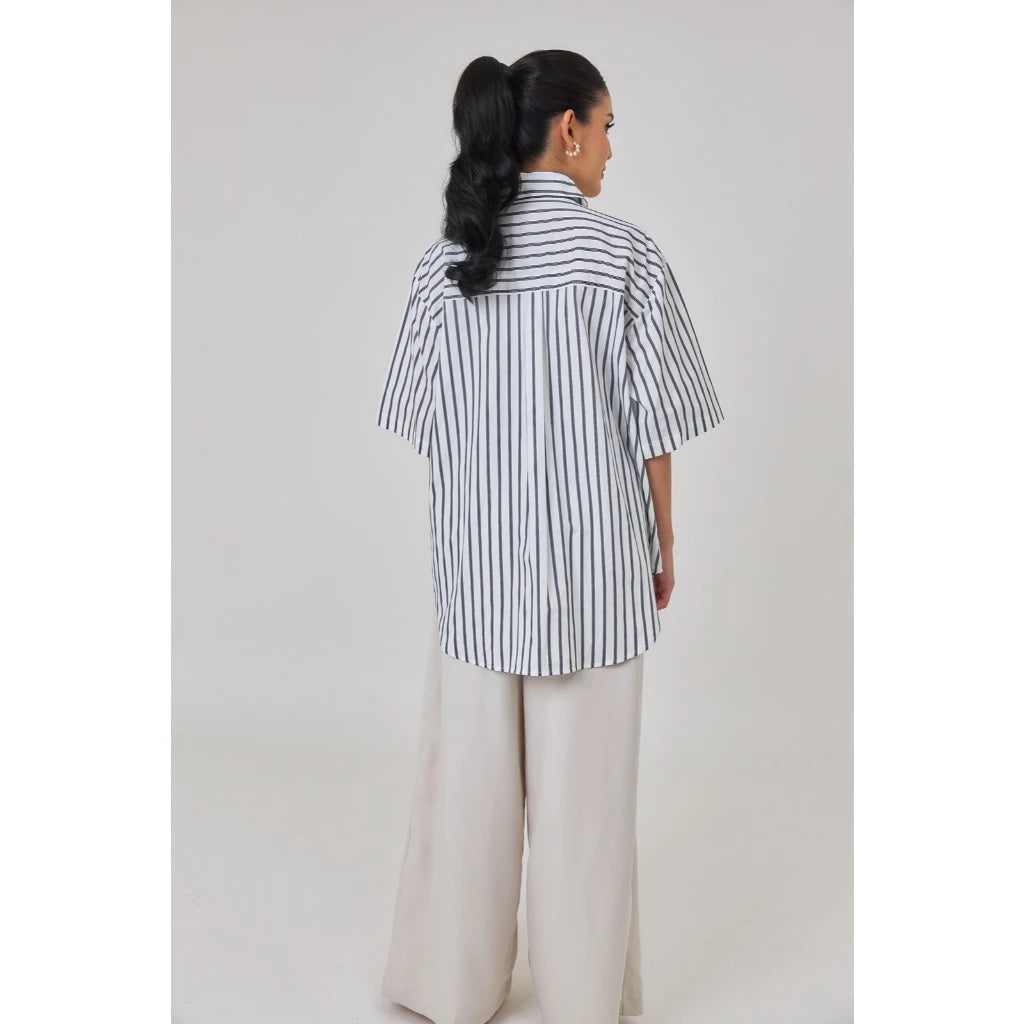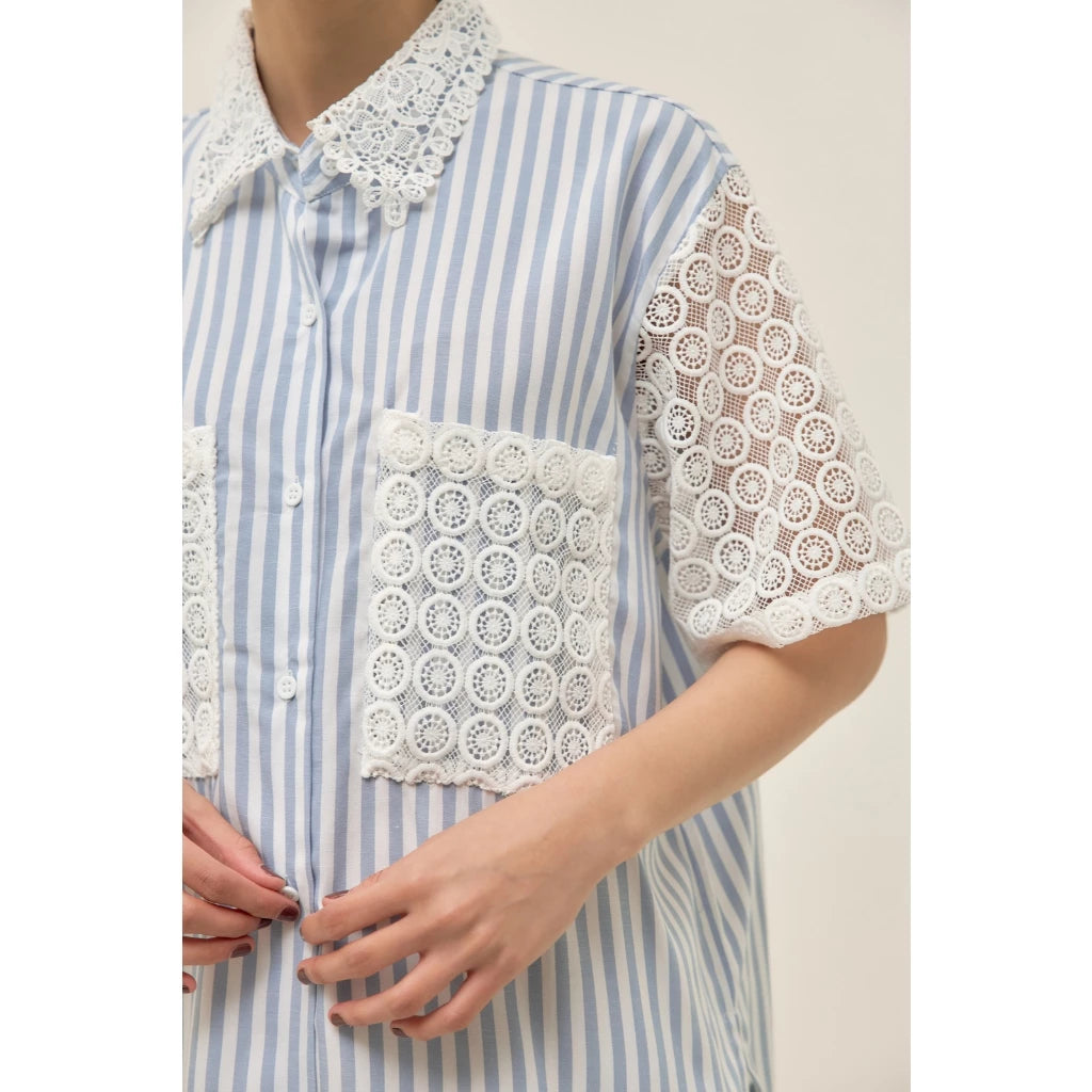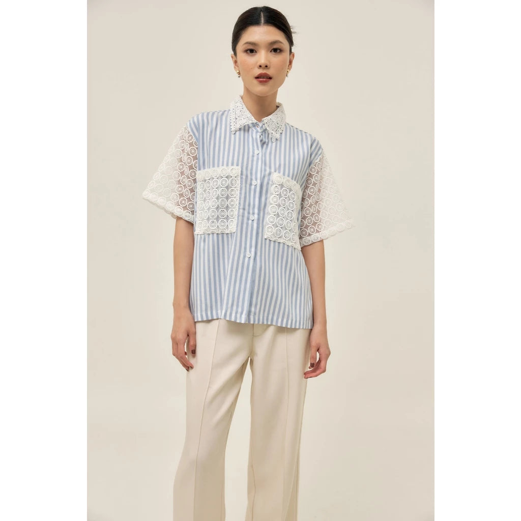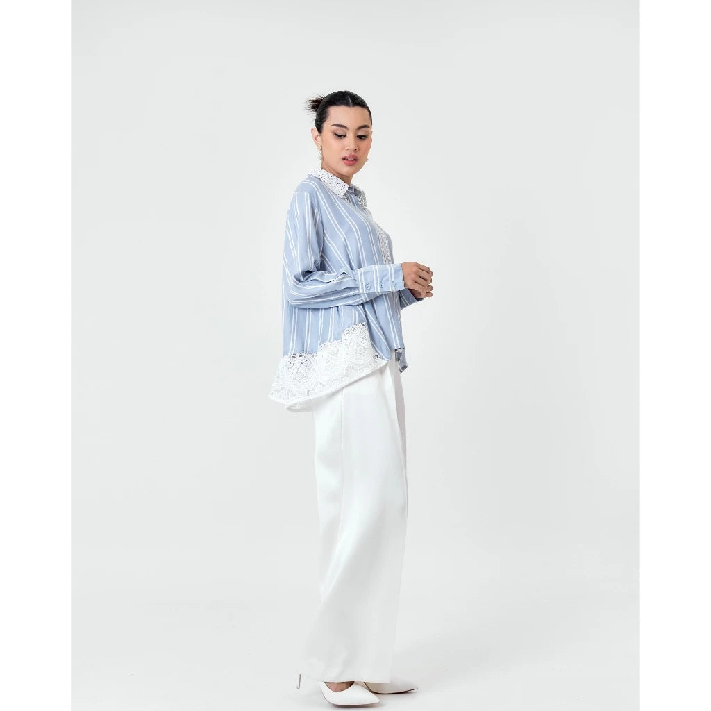 Tafya Shirt In Blue White - Studio Tui