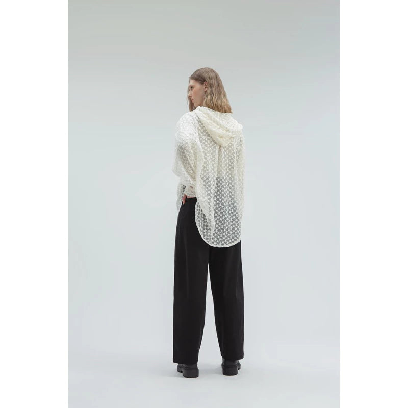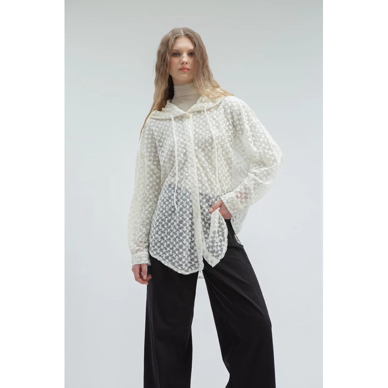 Lace Loose Hoodie Shirt Broken White - Yestoday