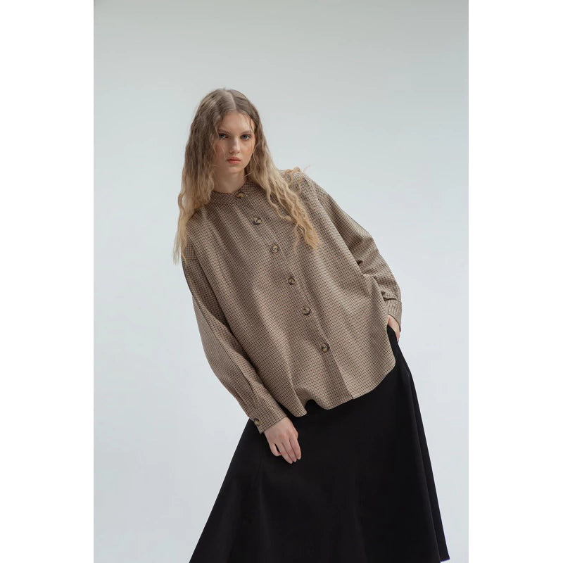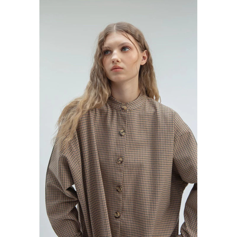 Oversized Boxy Shirt In Plaid Brown - Yestoday