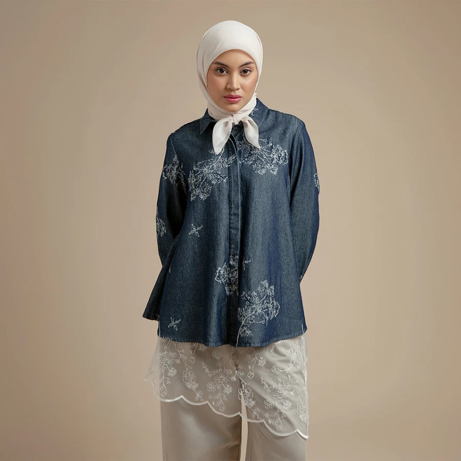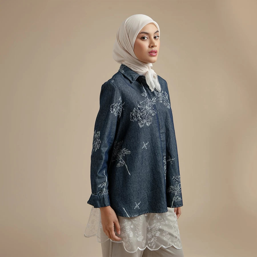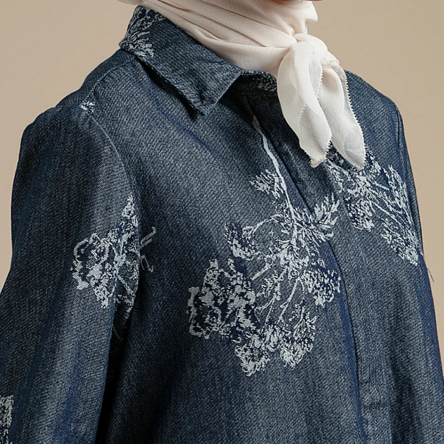 Kaia Blooming Boxyshirt Pure Indigo - Bwbyaz