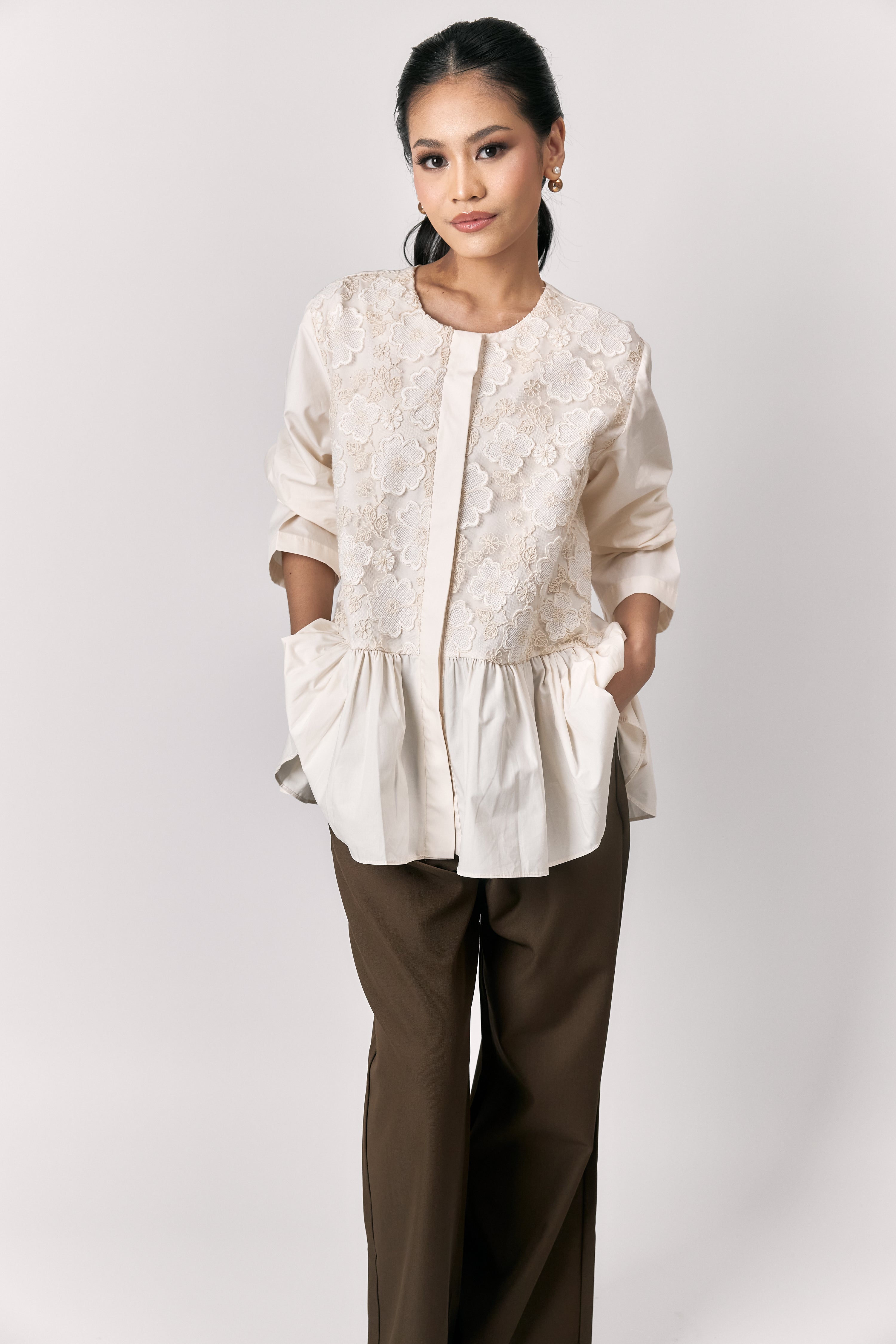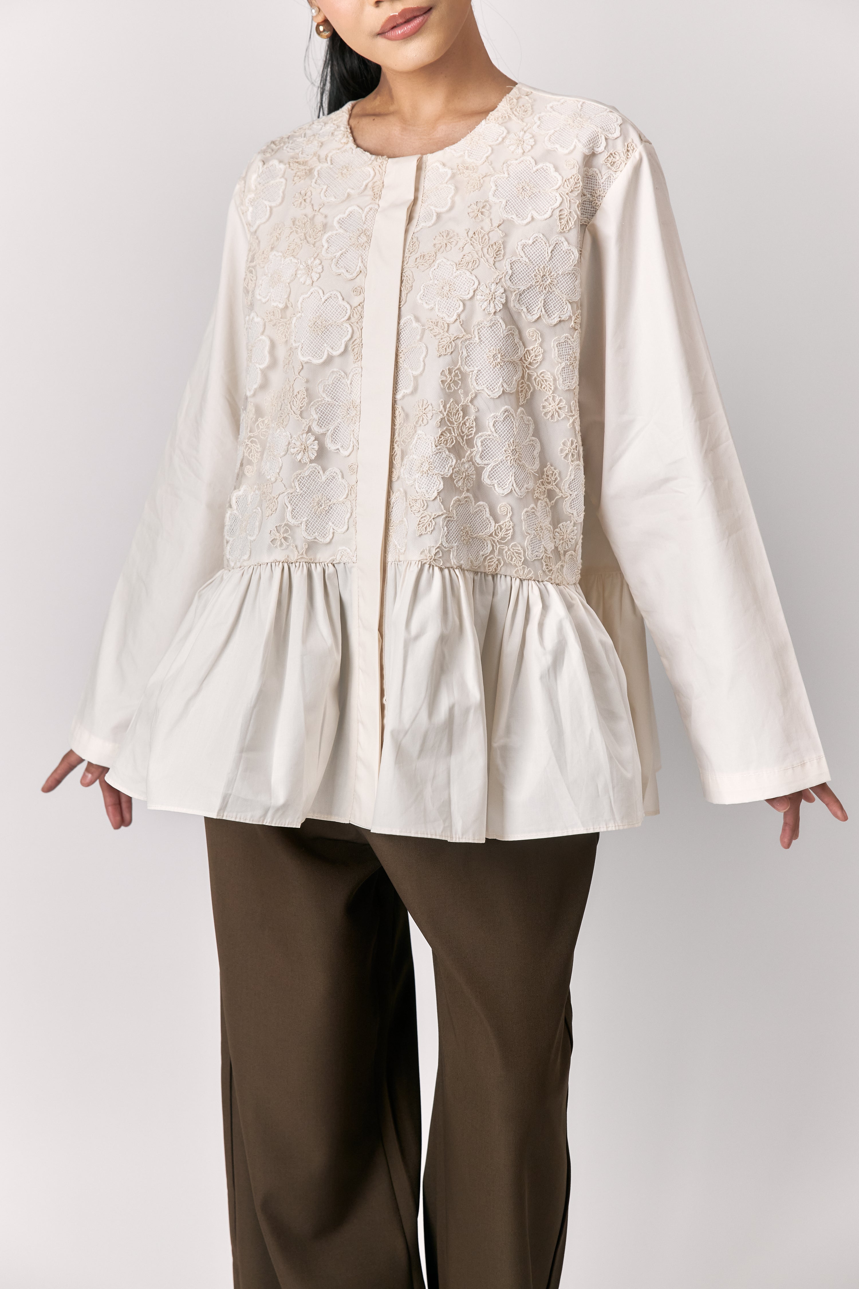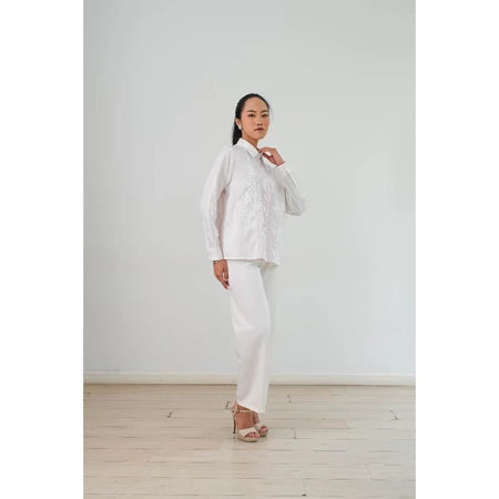 Poppy Cotton Textured Shirt White - Tantri Namirah Official
