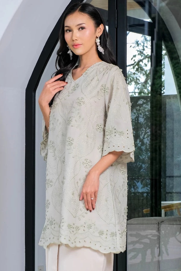 Dari sisi material, tren tunik terbaru mengutamakan bahan yang ringan, breathable, dan nyaman dipakai sepanjang hari, seperti katun premium, rayon, dan linen blend. Palet warna yang digunakan pun cenderung tenang dan timeless, meliputi warna netral, earthy tone, hingga pastel lembut yang mudah dipadukan dengan celana maupun rok. Tunik polos dengan struktur yang rapi menjadi pilihan utama untuk tampilan kerja dan aktivitas harian, sementara tunik dengan detail tekstur atau aksen asimetris cocok untuk gaya yang lebih refined dan modern.