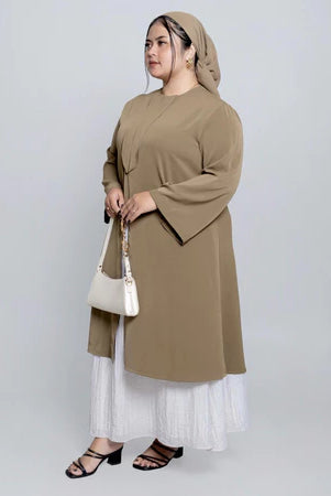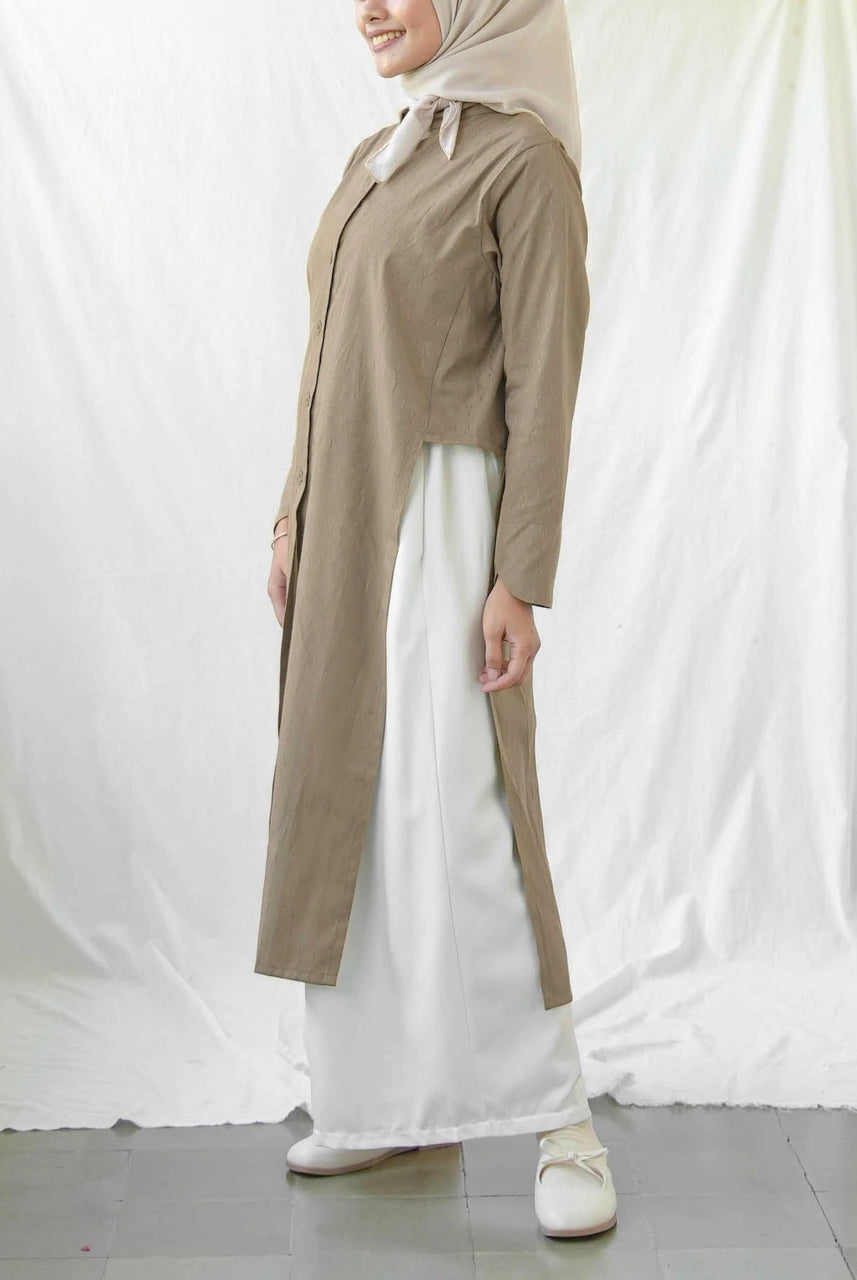 Tunik adalah jenis pakaian yang memiliki potongan longgar dan panjang, biasanya lebih panjang dari blus tetapi lebih pendek daripada gaun. Berbeda dari dress yang biasanya berdiri sendiri sebagai satu pakaian utuh, tunik perlu dipadukan dengan bawahan seperti celana bahan, kulot, atau rok plisket untuk tampilan yang lebih rapi dan hijab-friendly. Banyak yang menyamakan tunik dengan blouse, padahal blouse cenderung lebih pendek dan tidak selalu memiliki siluet longgar. Sementara atasan bisa merujuk ke banyak jenis baju bagian atas, tunik punya bentuk khas: longgar, memanjang, dan nyaman untuk layering. Dalam dunia modest fashion, tunik hadir dalam berbagai jenis, seperti tunik A-line, tunik oversized, dan tunik asimetris—masing-masing punya karakter tersendiri untuk menyesuaikan gaya dan kebutuhan aktivitasmu.