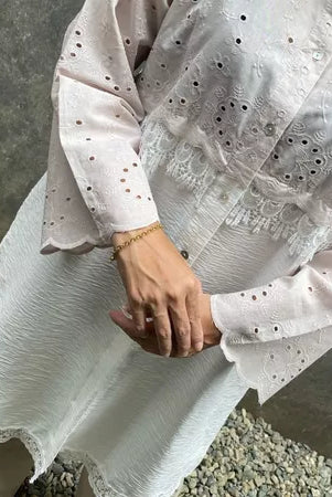 Warna misty lavender menjadi salah satu tren utama untuk tunik di tahun 2025. Nuansa ungu yang lembut ini memberikan kesan elegan dan menenangkan, cocok untuk berbagai acara, termasuk perayaan seperti Lebaran. - Model Long Tunik dengan Outer Midi