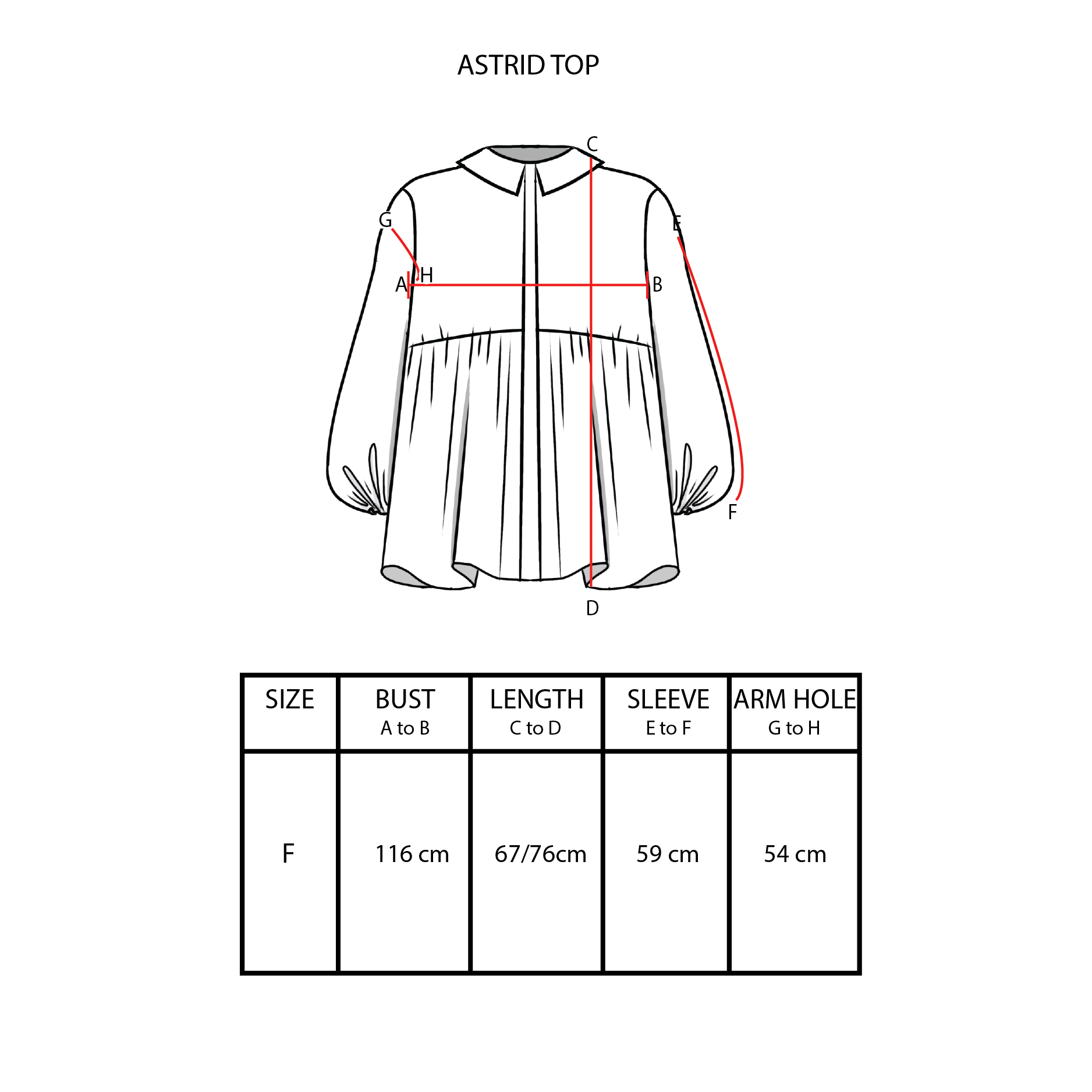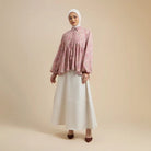 Detail Baju: Kerah kemeja, lengan manset, hidden button, detail kerut bagian belakang