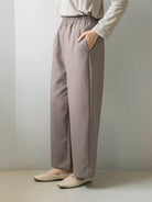 Material yang digunakan yaitu Soft Touch Finewooll (semi-wool) dengan tekstur lembut, jatuh natural, dan tebal namun tidak bulky. Karakter bahannya terasa ringan di kulit tapi tetap memberi siluet clean dan elegan. Dilengkapi karet pinggang fleksibel untuk kenyamanan, serta logo akrilik khas Mistyvori.