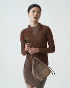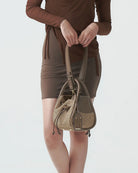 A structured yet relaxed, drawstring bag designed to be light in weight and comfortable to wear.