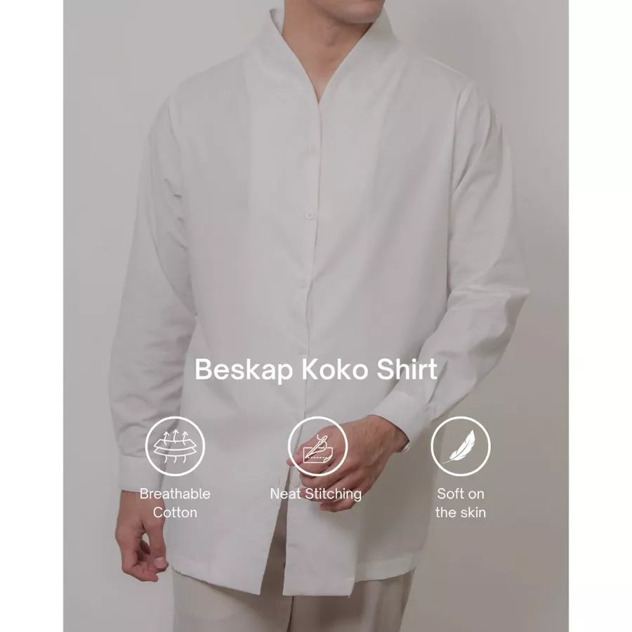 Kemeja koko berbahan katun yang lembut, menyerap keringat, dan nyaman dipakai. Desain kerah janggan menghadirkan look yang klasik namun tetap terasa stylish. Cocok untuk dipakai untuk hari raya dan momen lainnya.