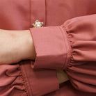 - Terdapat potongan yoke dengan detail kerut pada bagian belakang