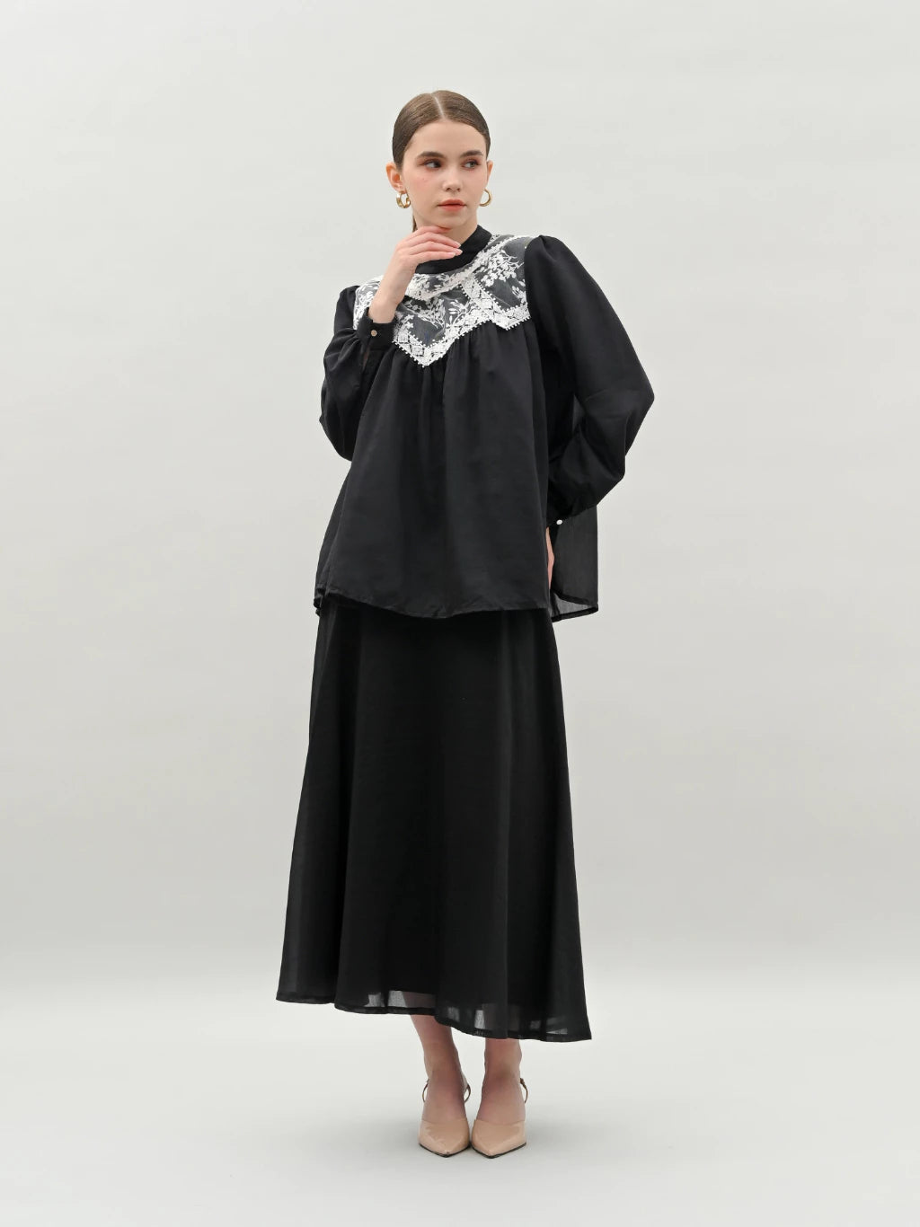 Rok berbahan lyocell yang lembut dan flowy dengan bentuk A-line. Cocok untuk sehari-hari atau pasangkan dengan atasan yang lebih formal untuk look yang sophisticated.