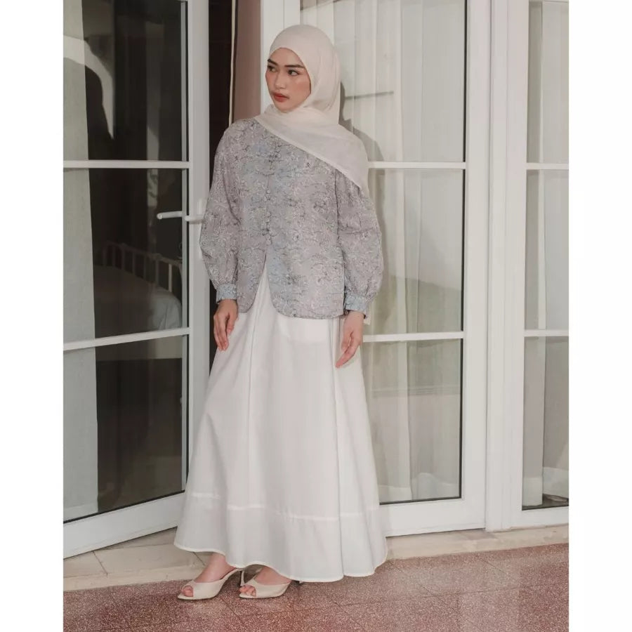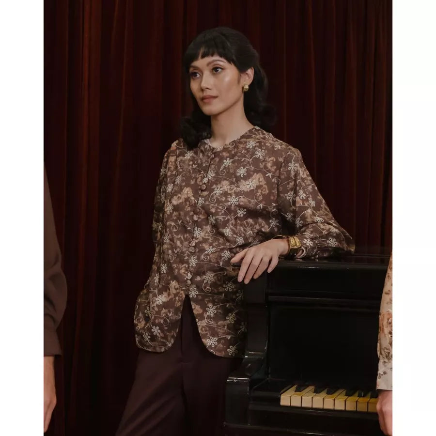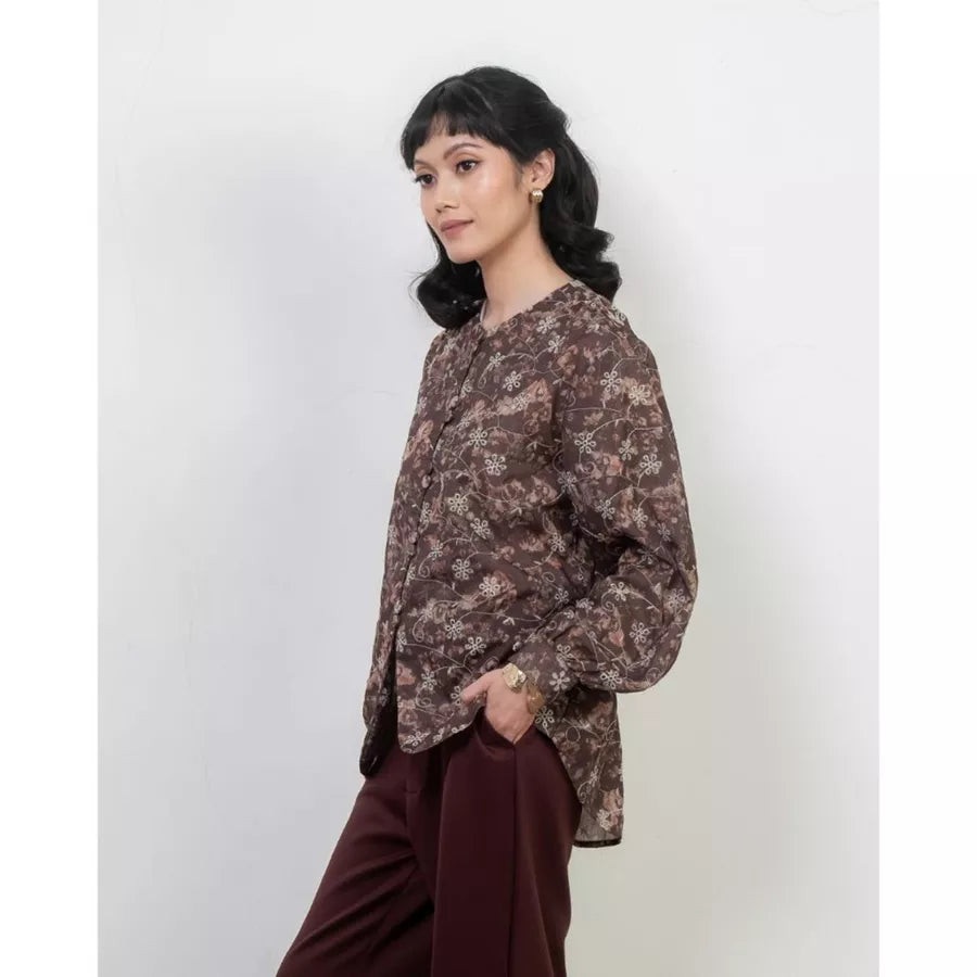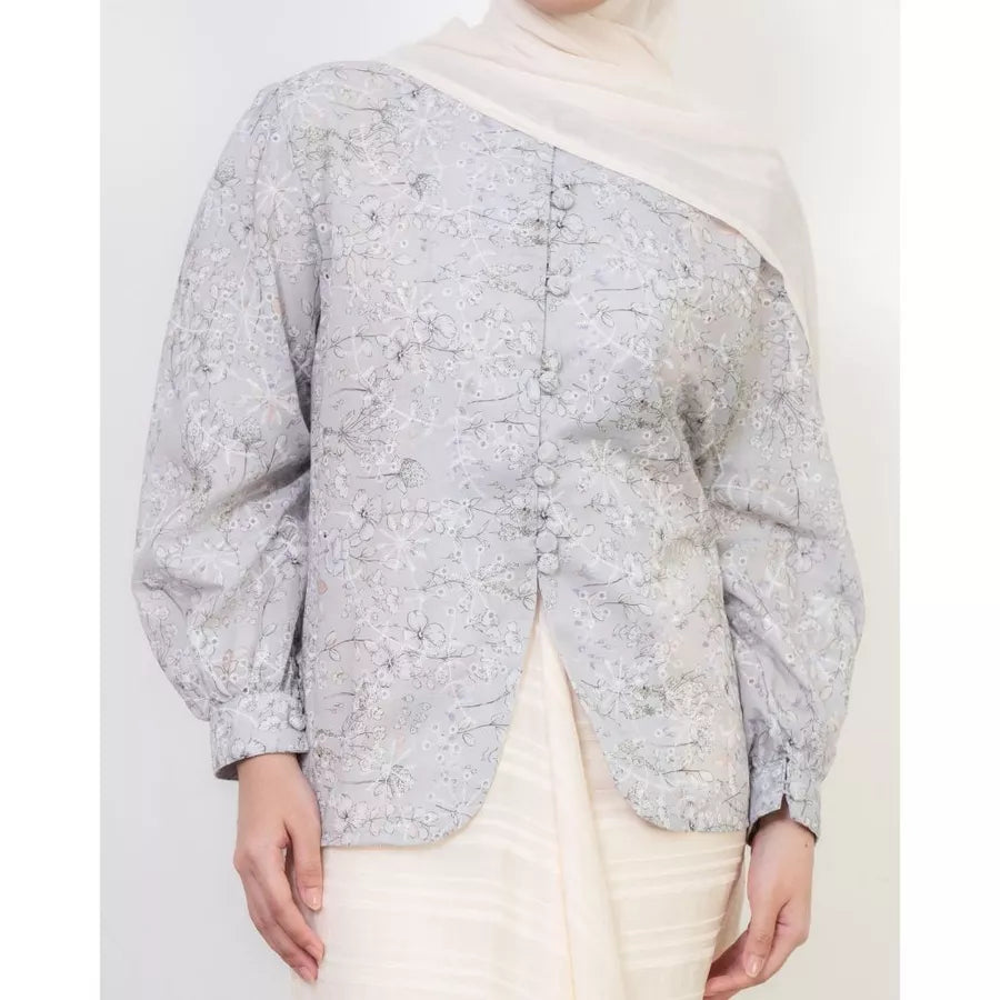 Blouse bermotif floral yang manis dilengkapi dengan aksesoris kancing dan adjustable ribbon di bagian pinggang untuk menyesuaikan siluet yang diinginkan. Berbahan cotton bordir yang lembut dan menyerap keringat, sejuk dipakai seharian.