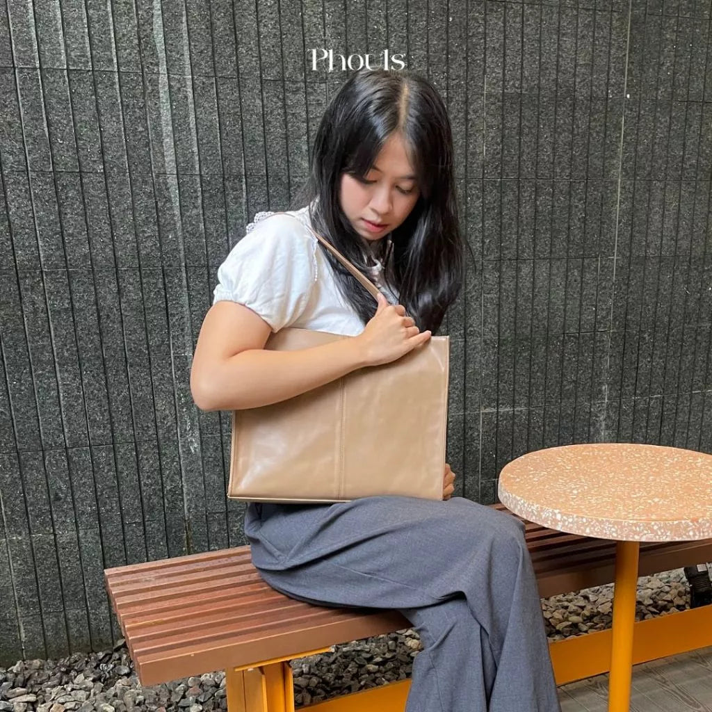 Tas bahu yang muat banyak. Bisa menyimpan laptop hingga ukuran 14 inchi. Dibuat untuk kamu yang perlu membawa banyak barang namun tetap terlihat stylish.