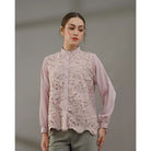 Atasan dengan kombinasi lace yang mewah dan elegan. Motif lace bunganya sangat manis dan perpaduan dengan bahan crinkle yang flowy membuat atasan ini cocok untuk segala acara.