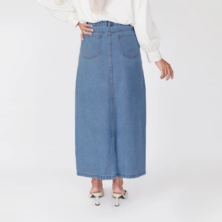 Rok berbahan denim dengan siluet lurus dan dilengkapi detail slit pada bagian belakang akan menyempurnakan tampilanmu saat hangout bersama teman-teman dan orang terkasih.