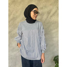 blouse ini terbuat dari kombinasi katun Jepang yang terkenal akan kualitasnya yang tinggi, lembut, dan nyaman di kulit, serta rib katun yang memberikan elastisitas dan tekstur menarik pada desain.