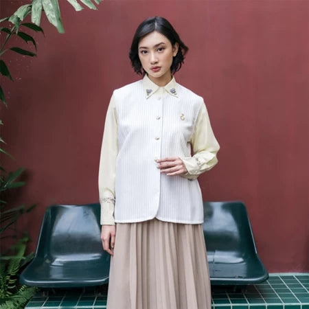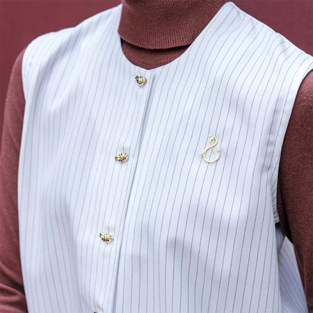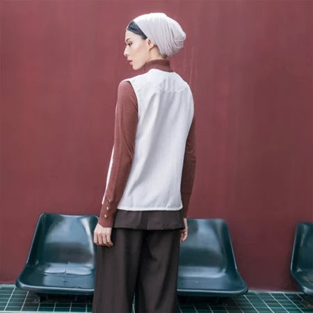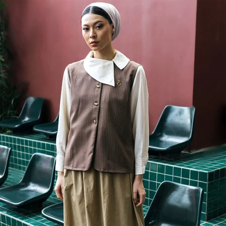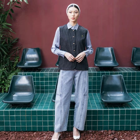 Denia Vest is a modest fashion essential that blends classic design with modern sophistication. Made from refined striped fabric, this vest features a refined silhouette, a statement fancy button, and an exclusive metal plate detail that adds a touch of elegance. Perfect for layering, it offers effortless versatility for both work and casual occasions. Whether paired with tailored pants or a flowy skirt, it’s your go-to piece for timeless style.