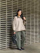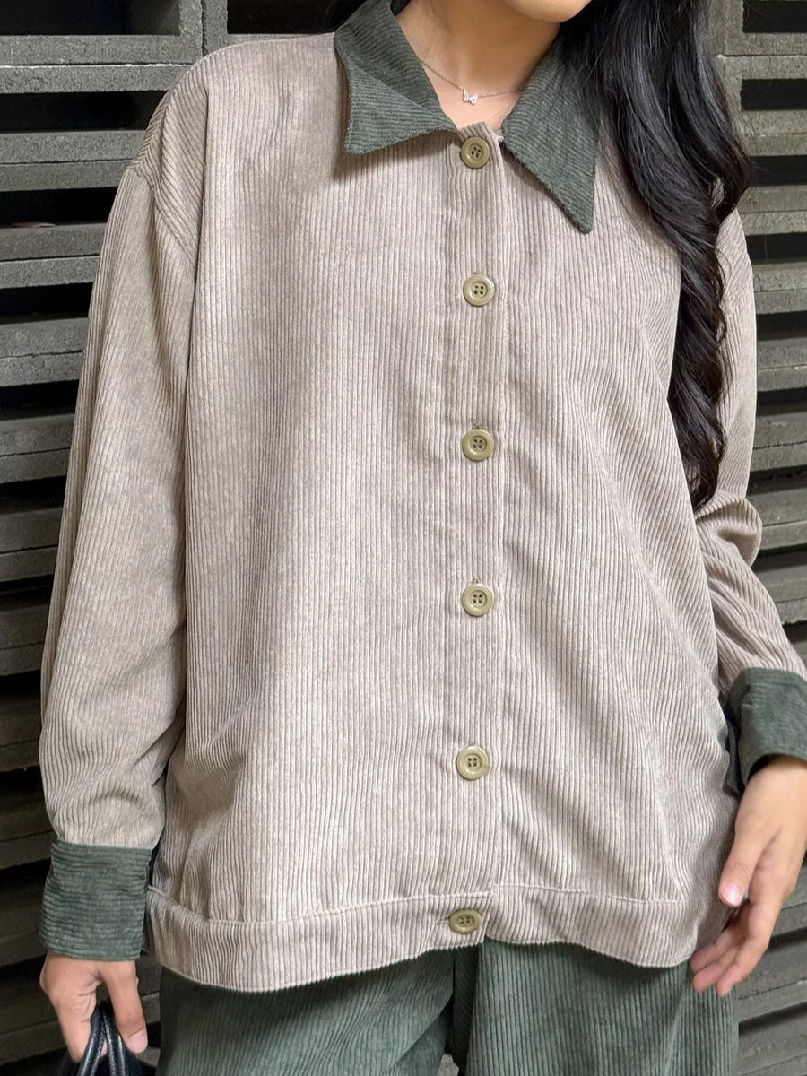 Kemeja crop shirt twotone dengan kombinasi dibagian kerah, manset tangan dan belakang. Material bahan Corduroy Premium yang lembut saat dipakai dan tidak mudah gerah, kemeja ini cocok untuk berbagai kesempatan dari santai hingga semi-formal, anda akan tampil beda di setiap kesempatan. Ukuran Oversized memberikan kenyamanan maksimal dan tampilan trendi, cocok untuk semua bentuk tubuh.