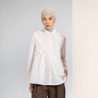 Detail: Flower bordir 3D, Kerah kemeja, Hidden Button, Lengan manset, Fit Silhouette