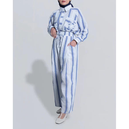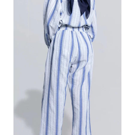 Elia Pants Linen White Blue - Vlowy