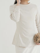 Blouse wanita dengan siluet fitted yang ramping dan elegan—didesain untuk hari-hari saat kamu ingin tampil rapi, tenang, dan tetap nyaman sepanjang waktu. Potongannya mengikuti lekuk tubuh dengan lembut tanpa terasa ketat, menghadirkan kesan feminin yang halus dan tidak berlebihan. Jahitan detail di bagian atas dan garis pinggang mempertegas bentuk dengan cara yang subtil dan anggun, menjadikan Elma pilihan tepat untuk tampilan yang bersih dan terstruktur.