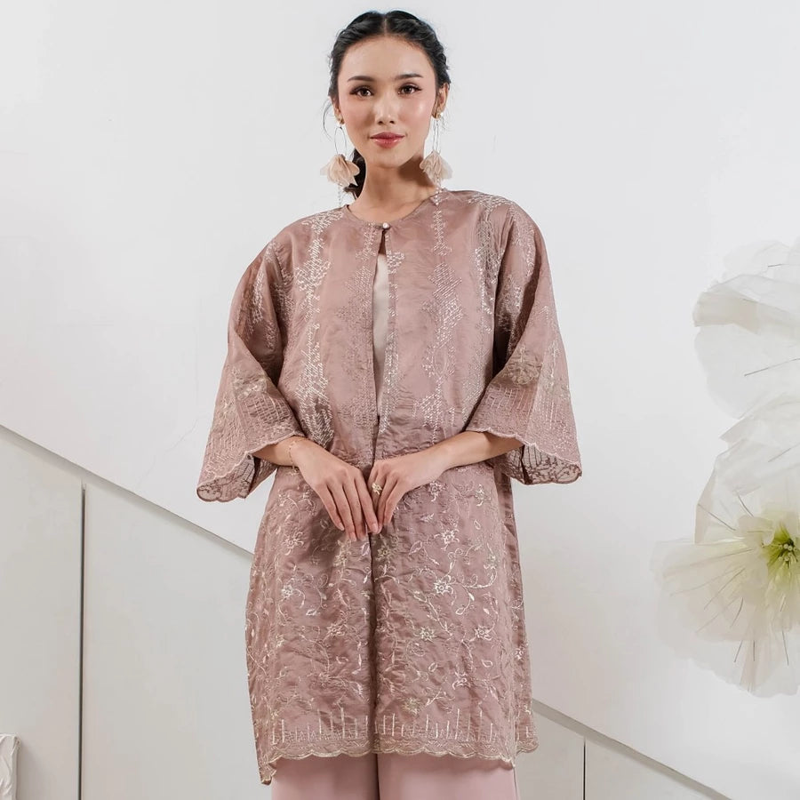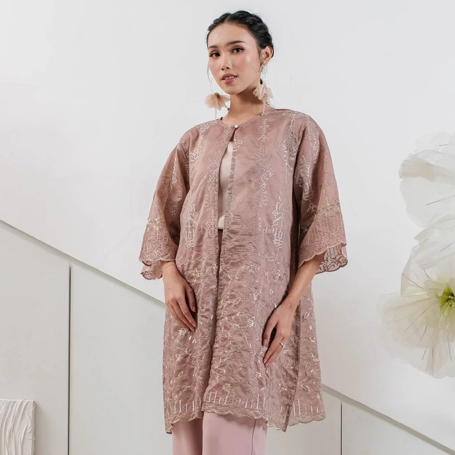 Outer mewah dengan bahan organza dan detail embroidery yang membuat tampilan lebih feminine dan stand out. Combinasi yang tepat untuk berbagai acara formal maupun nonformal. Tersedia 9 warna untuk menyempurnakan penampilan.
