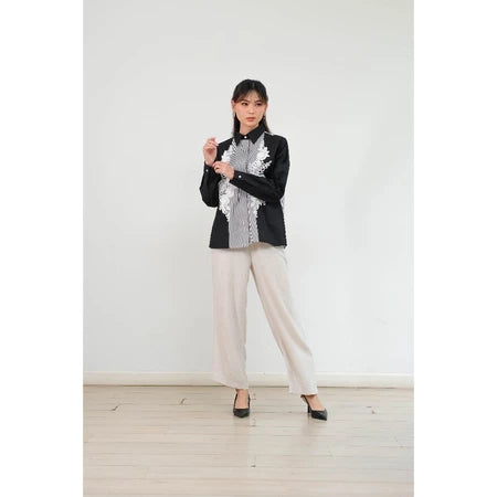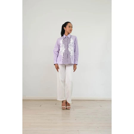 Kemeja Wanita Stripe series dengan detai bordi di kedua sisi