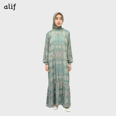 Alif Dress menggunakan material Armany Satin Silk dengan karakteristik flowly, halus, lembut, ringan saat digunakan dan tidak menerawang.