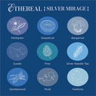 Ethereal Silver Mirage is the ultimate sporty, yet refined fragrance–an olfactory statement that embodies strength, style and stamina. A perfect balance between fresh citrus, soft suede, and deep woody warmth. Perfect for those who demand both performance and sophistication in their scent.