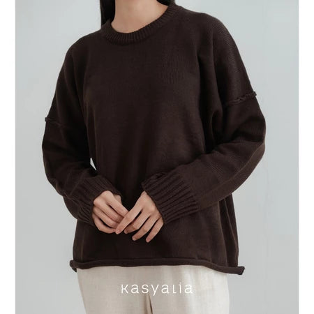 Faye Oversized Sweater embraces comfort with character. Knitted in a relaxed silhouette, this piece features exposed seam details reminiscent of an inside-out finish—adding an effortless, lived-in charm. With its cozy weight and timeless shape, Faye is the kind of sweater you’ll keep reaching for, season after season.