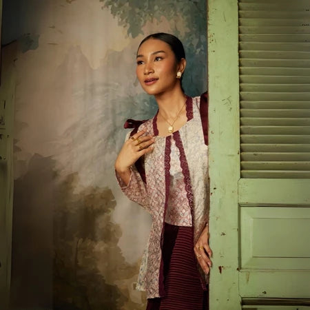 GENDHIS, Atasan Kebaya Batik wanita dengan details pita yang bernuansa merah dengan sentuhan